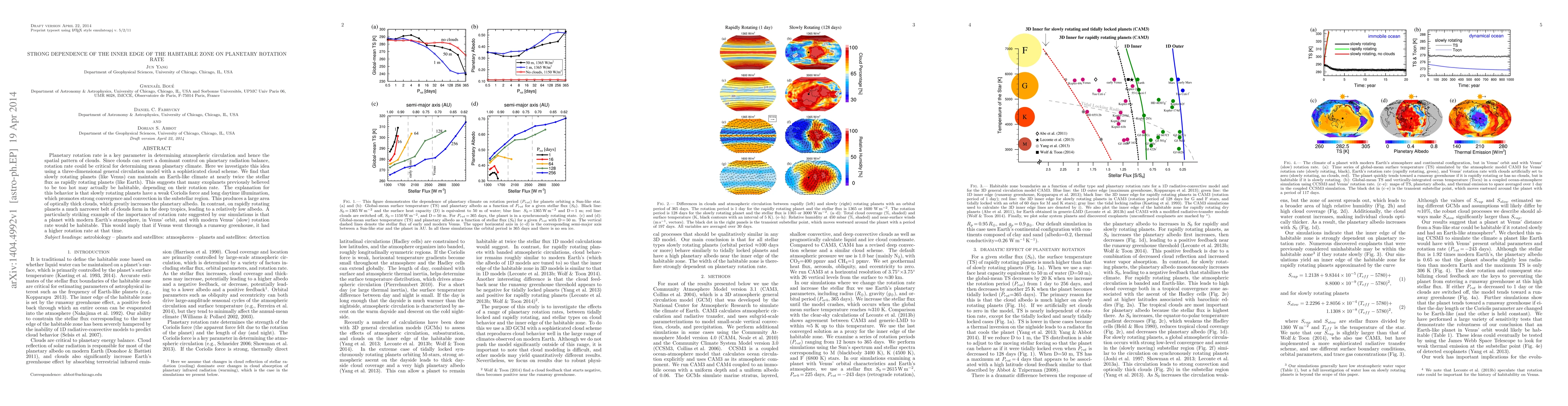 This study reveals that planetary rotation rate significantly influences the inner edge of a planet's habitable zone by affecting atmospheric circulation and cloud formation, which in turn modulates the planet's radiation balance and climate. Slowly rotating planets can sustain Earth-like climates at higher stellar fluxes due to increased cloud cover and albedo, suggesting many previously deemed uninhabitable exoplanets may be suitable for life based on their rotation rates.