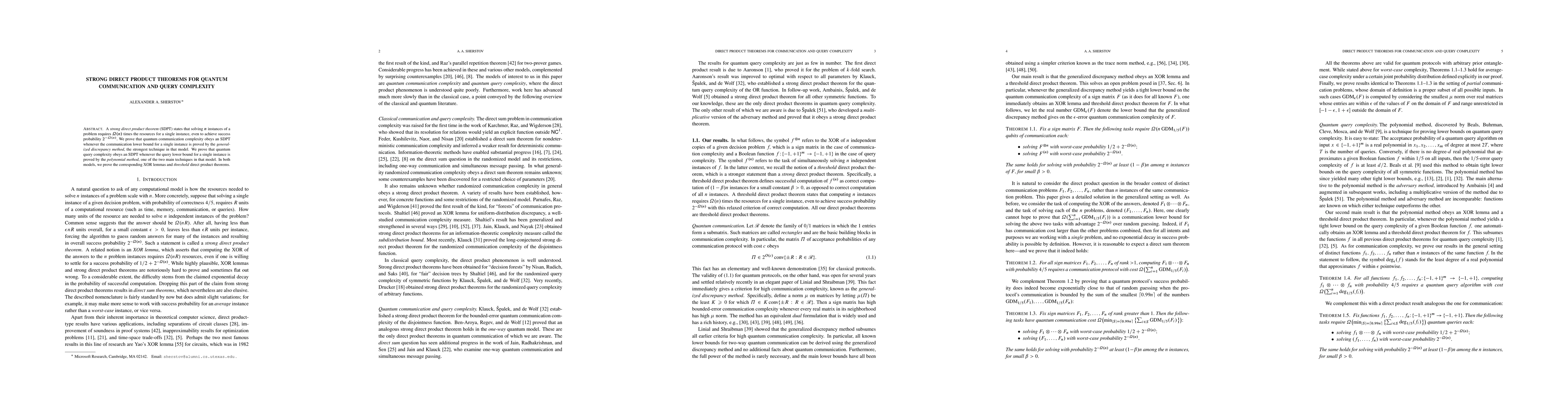 This paper proves strong direct product theorems for quantum communication and query complexity, showing that solving multiple instances of a problem requires significantly more resources than a single instance, even with low success probabilities. It applies the strongest techniques for communication and the main techniques for query complexity to establish these theorems.
