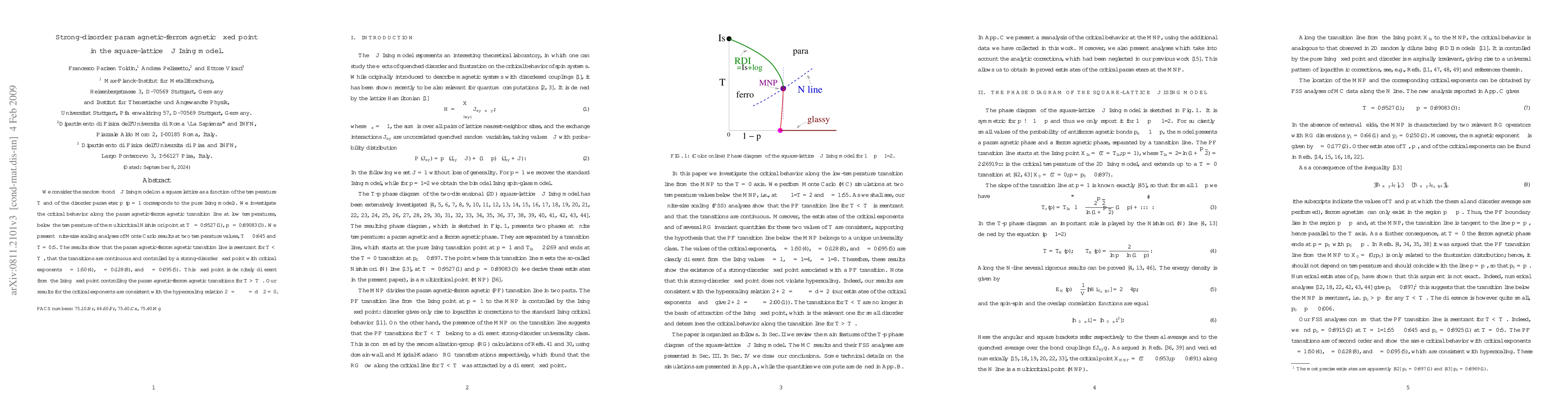This paper investigates the critical behavior of the random-bond +- J Ising model on a square lattice, revealing a strong-disorder paramagnetic-ferromagnetic fixed point with unique critical exponents, distinct from the conventional Ising fixed point. The study confirms continuous transitions and a reentrant transition line below the multicritical point.