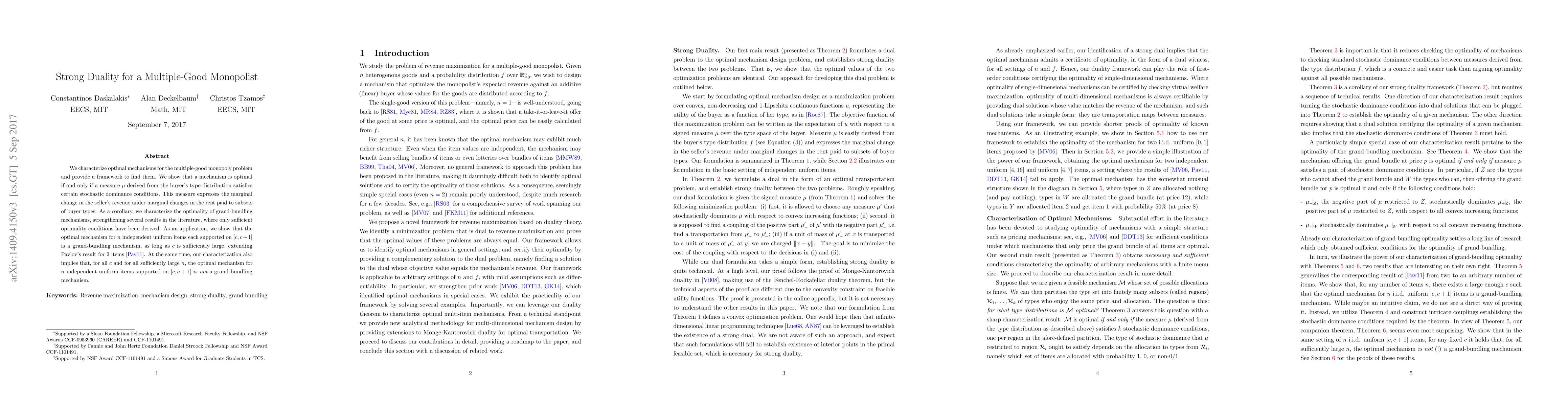 We characterize optimal mechanisms for the multiple-good monopoly problem and provide a framework to find them. We show that a mechanism is optimal if and only if a measure $\mu$ derived from the buyer's type distribution satisfies certain stochastic dominance conditions. This measure expresses the marginal change in the seller's revenue under marginal changes in the rent paid to subsets of buyer types. As a corollary, we characterize the optimality of grand-bundling mechanisms, strengthening several results in the literature, where only sufficient optimality conditions have been derived. As an application, we show that the optimal mechanism for $n$ independent uniform items each supported on $[c,c+1]$ is a grand-bundling mechanism, as long as $c$ is sufficiently large, extending Pavlov's result for $2$ items [Pavlov'11]. At the same time, our characterization also implies that, for all $c$ and for all sufficiently large $n$, the optimal mechanism for $n$ independent uniform items supported on $[c,c+1]$ is not a grand bundling mechanism.
