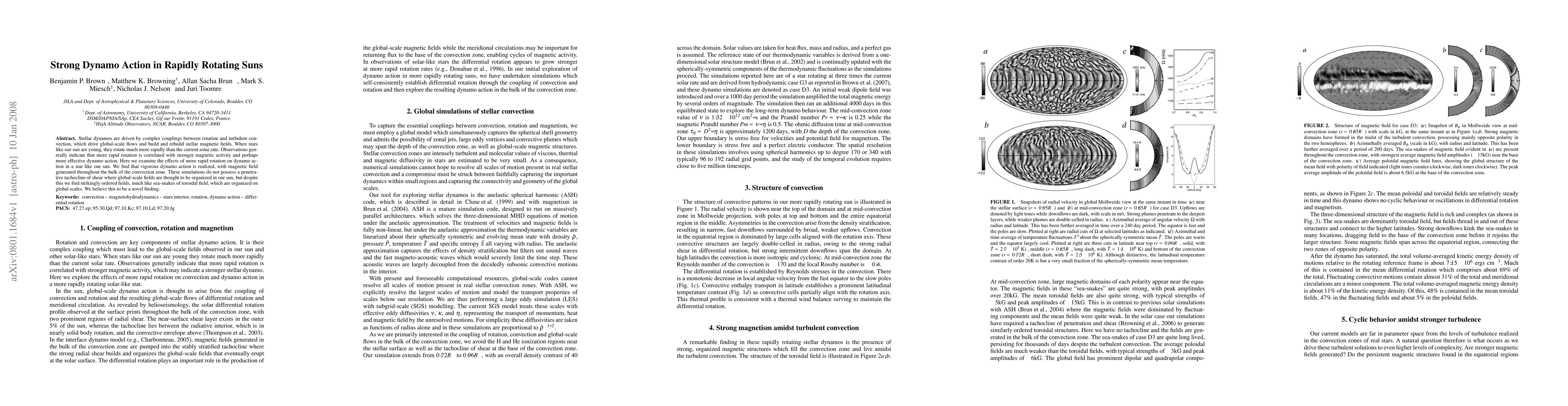 This paper explores how rapid rotation in young stars like the sun enhances dynamo action, generating strong, globally organized magnetic fields throughout the convection zone, despite the absence of a penetrative tachocline. The findings suggest a more effective dynamo mechanism in rapidly rotating stars.