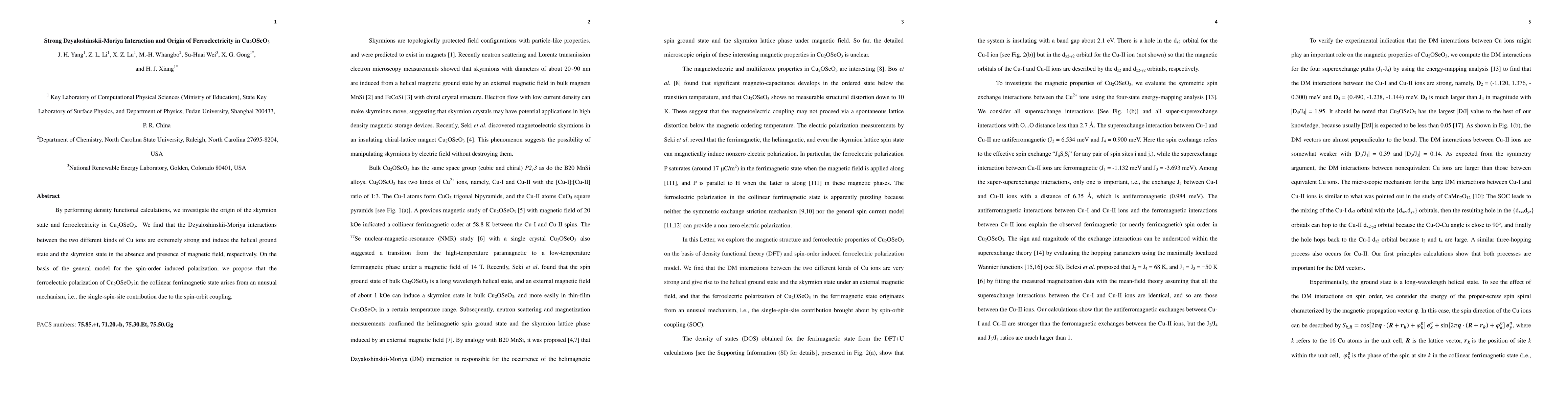 This study reveals that strong Dzyaloshinskii-Moriya interactions in Cu2OSeO3 lead to a skyrmion state and ferroelectricity, with the latter arising from a unique single-spin-site contribution due to spin-orbit coupling rather than traditional mechanisms.