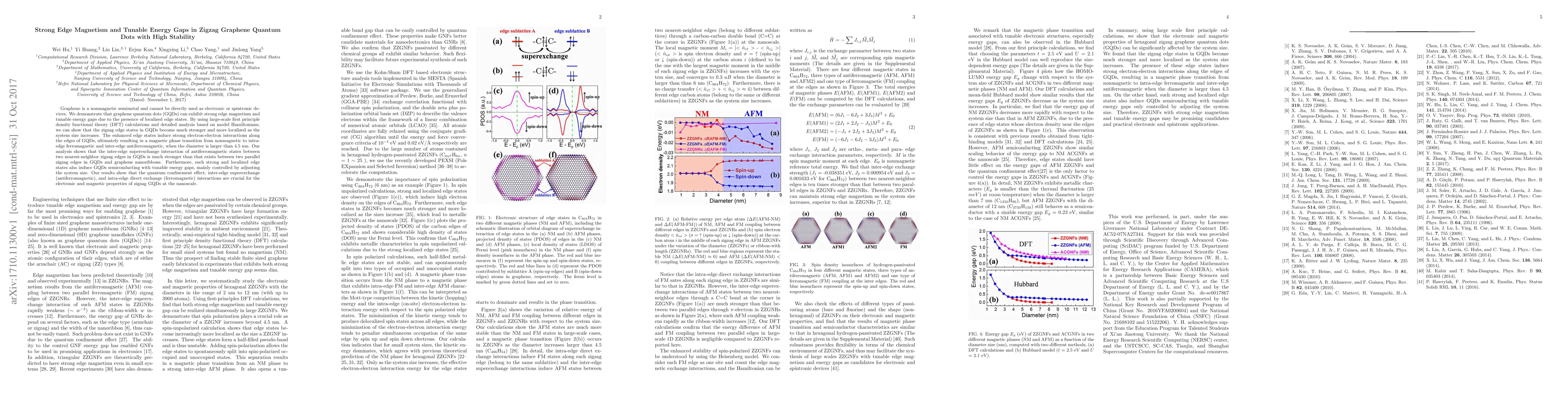 This paper demonstrates that zigzag graphene quantum dots (GQDs) exhibit strong edge magnetism and tunable energy gaps due to localized edge states. The study shows that as GQD size increases, edge magnetism becomes stronger, leading to a magnetic phase transition from nonmagnetic to intra-edge ferromagnetic and inter-edge antiferromagnetic when the diameter exceeds 4.5 nm, with significant implications for electronic and spintronic applications.