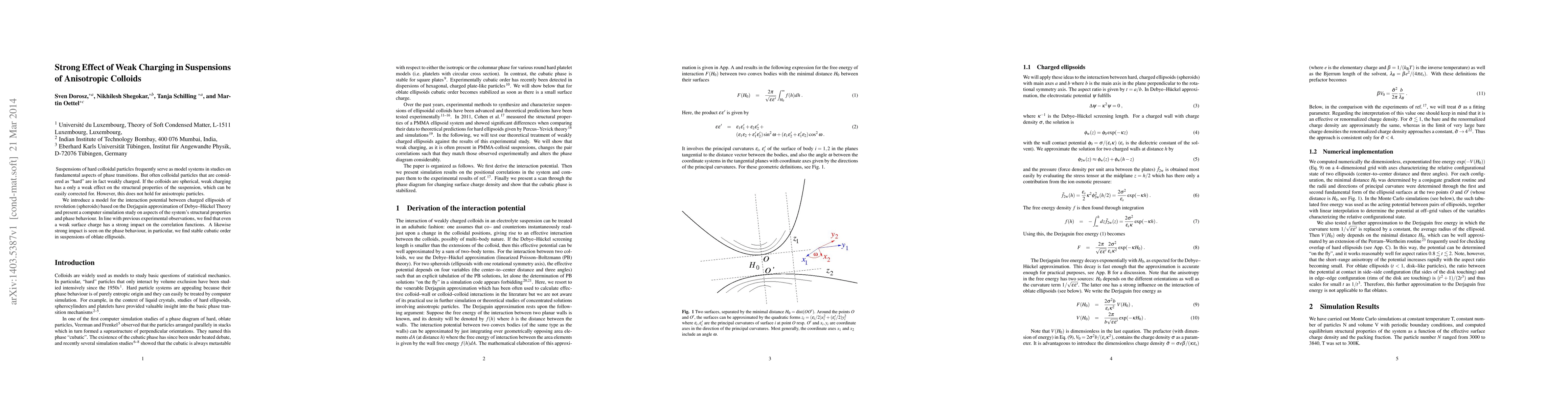 This paper investigates the significant effects of weak surface charging on anisotropic colloidal particles, specifically ellipsoids, using a model based on Debye-Hückel theory and computer simulations. The study reveals that weak charging strongly influences the structural properties and phase behavior, including the emergence of stable cubic order in oblate ellipsoid suspensions.