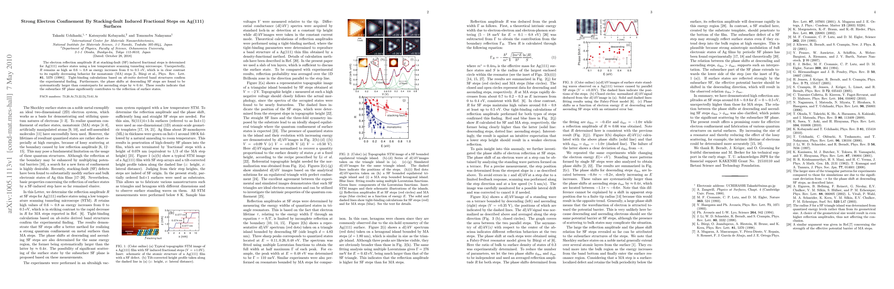 This study reveals that stacking-fault induced fractional steps on Ag(111) surfaces exhibit strong electron confinement, with reflection amplitude $R$ remaining high ($0.6 \sim 0.8$) up to 0.5 eV, contrasting with monatomic steps. Tight-binding calculations corroborate these findings, showing phase shifts at descending SF steps are larger by $\approx 0.4 \pi$.
