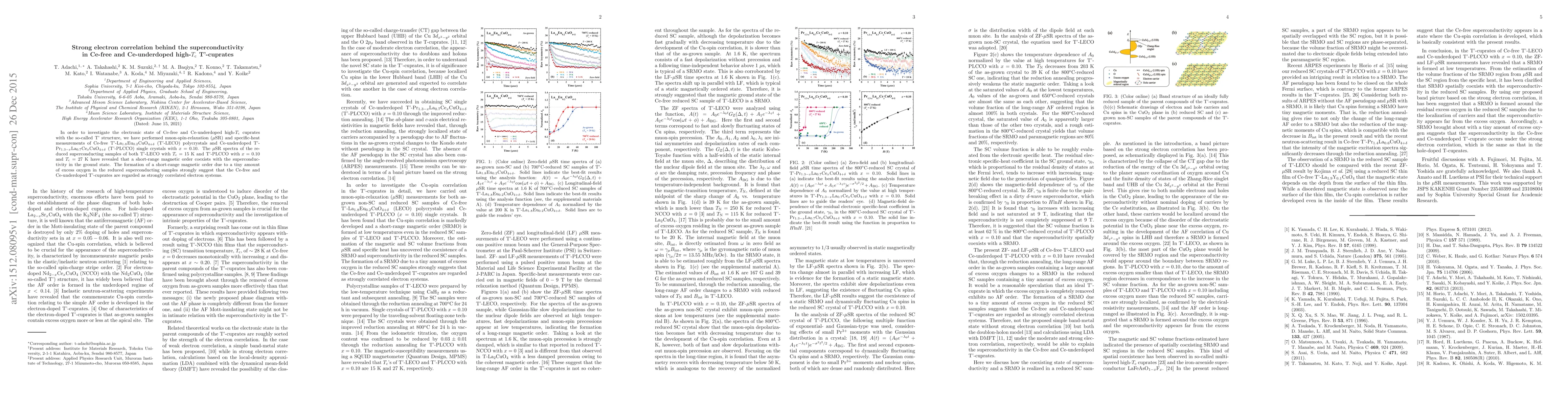 This study investigates the electronic state of Ce-free and Ce-underdoped high-Tc T'-cuprates using muSR and specific-heat measurements, revealing short-range magnetic order coexisting with superconductivity, indicating strong electron correlation in these materials.