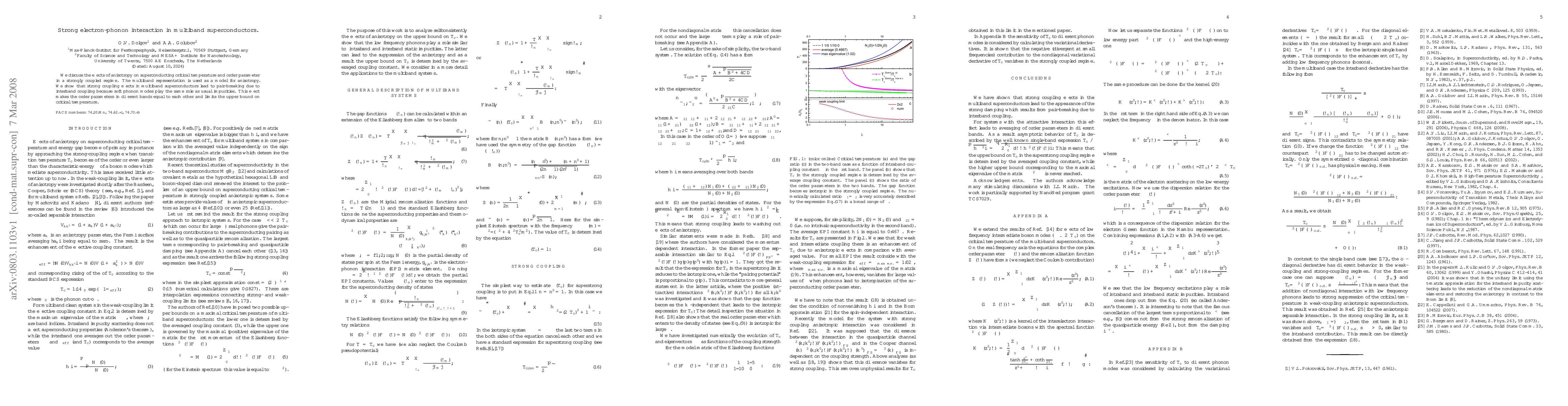 Summary: This paper investigates the impact of anisotropy on superconducting critical temperature and order parameter in multiband superconductors, revealing that strong electron-phonon interactions lead to pair-breaking due to interband coupling, equalizing order parameters and limiting the critical temperature.