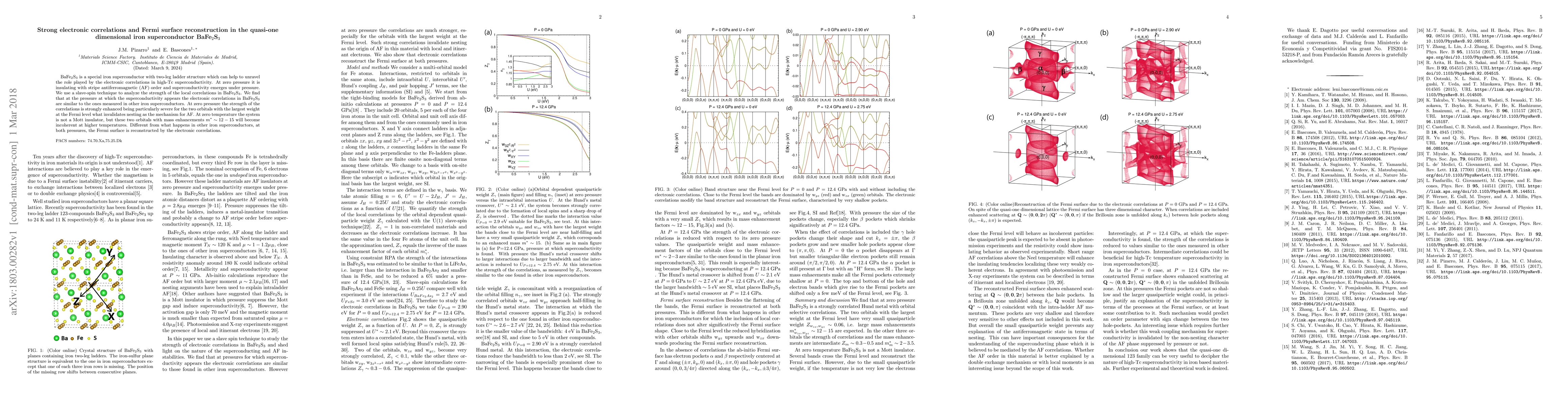 This paper investigates the electronic correlations and Fermi surface reconstruction in BaFe2S3, a quasi-one-dimensional iron superconductor. It finds that strong electronic correlations, particularly in two orbitals, lead to Fermi surface reconstruction and invalidate nesting as the mechanism for antiferromagnetism, distinguishing it from other iron superconductors.