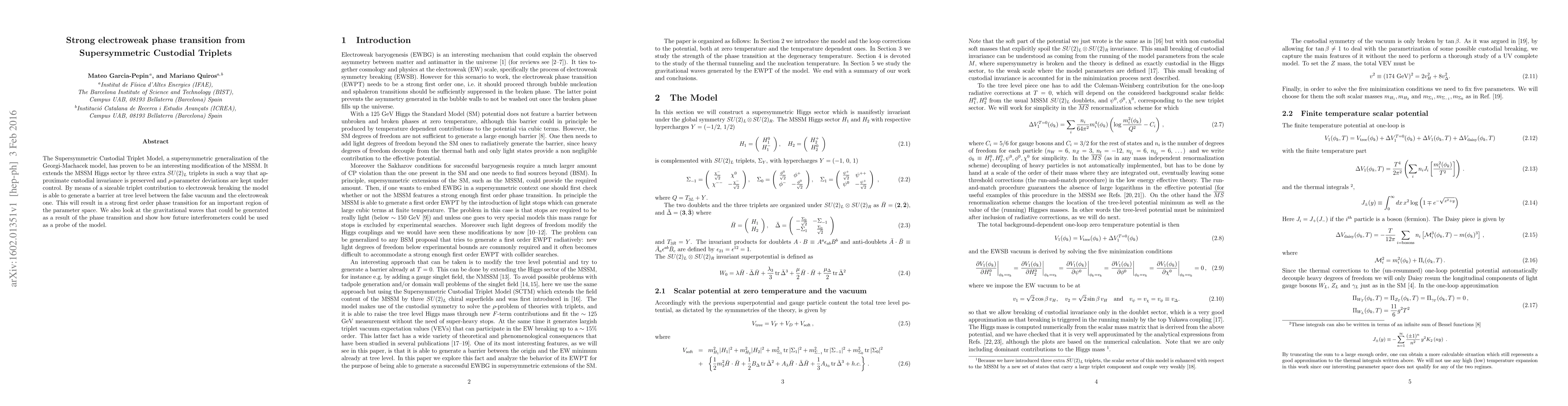 The Supersymmetric Custodial Triplet Model extends the MSSM with triplets, generating a strong first-order electroweak phase transition and potential detectable gravitational waves, offering a probe for future interferometers.