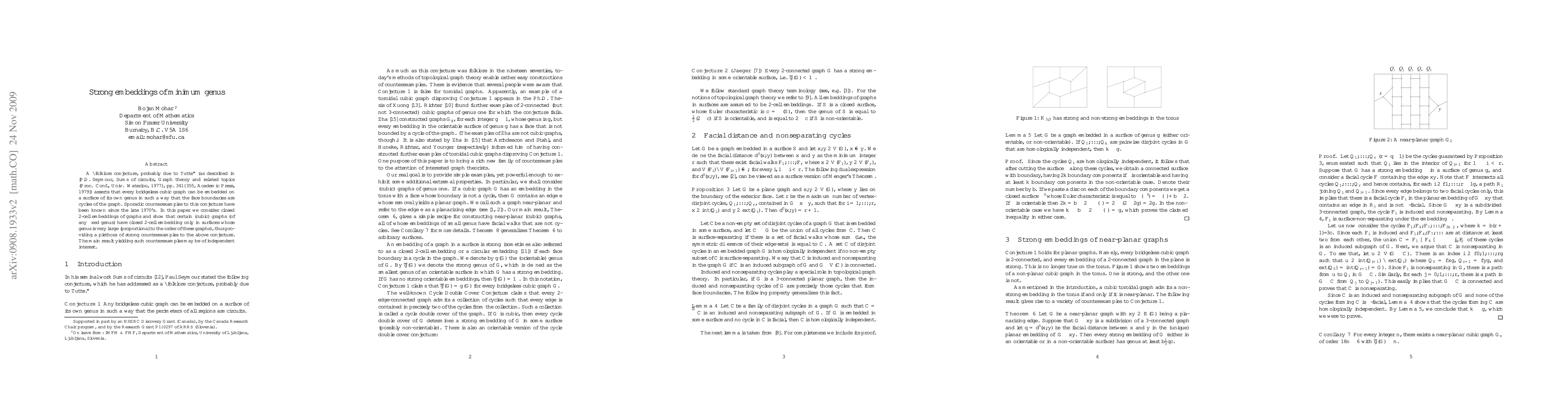 A "folklore conjecture, probably due to Tutte" (as described in [P.D. Seymour, Sums of circuits, Graph theory and related topics (Proc. Conf., Univ. Waterloo, 1977), pp. 341-355, Academic Press, 1979]) asserts that every bridgeless cubic graph can be embedded on a surface of its own genus in such a way that the face boundaries are cycles of the graph. In this paper we consider closed 2-cell embeddings of graphs and show that certain (cubic) graphs (of any fixed genus) have closed 2-cell embedding only in surfaces whose genus is very large (proportional to the order of these graphs), thus providing plethora of strong counterexamples to the above conjecture. The main result yielding such counterexamples may be of independent interest.