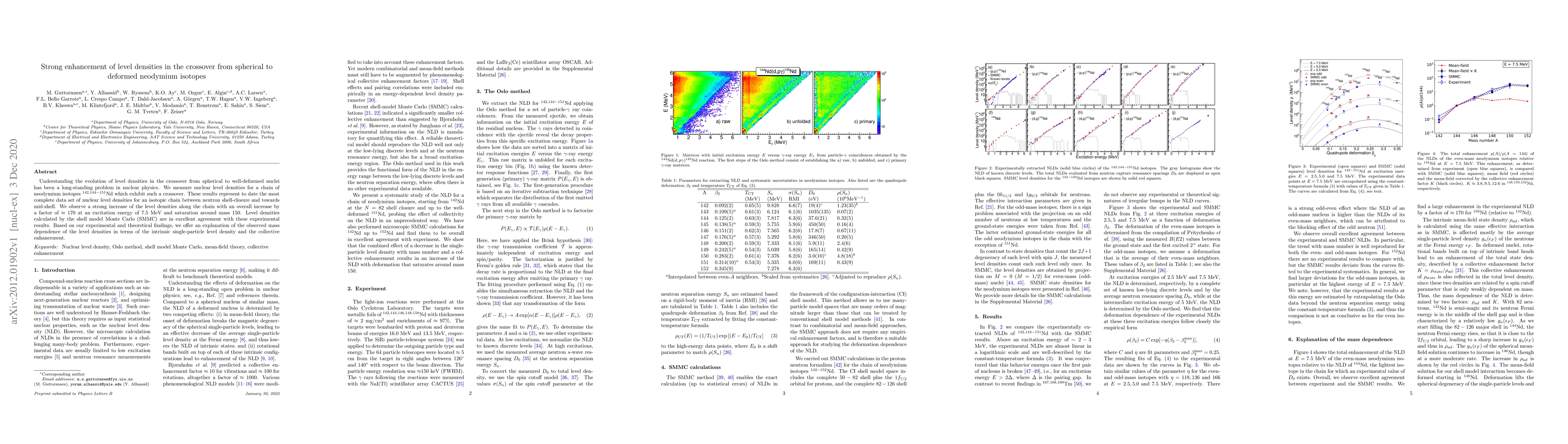 This study measures nuclear level densities in neodymium isotopes, revealing a strong increase during the transition from spherical to deformed nuclei, with a factor of 170 rise by mass 150. The shell model Monte Carlo calculations match the experimental data, providing insight into the mass dependence through intrinsic single-particle and collective effects.