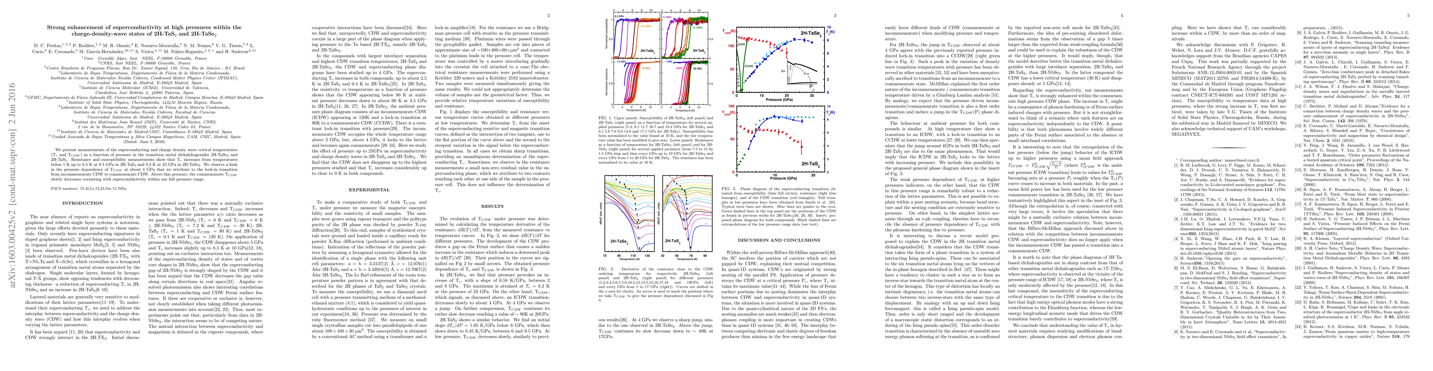 We present measurements of the superconducting and charge density wave critical temperatures (Tc and TCDW) as a function of pressure in the transition metal dichalchogenides 2H-TaSe2 and 2H-TaS2. Resistance and susceptibility measurements show that Tc increases from temperatures below 1 K up to 8.5 K at 9.5 GPa in 2H-TaS2 and 8.2 K at 23 GPa in 2H-TaSe2. We observe a kink in the pressure dependence of TCDW at about 4 GPa that we attribute to the lock-in transition from incommensurate CDW to commensurate CDW. Above this pressure, the commensurate TCDW slowly decreases coexisting with superconductivity within our full pressure range.
