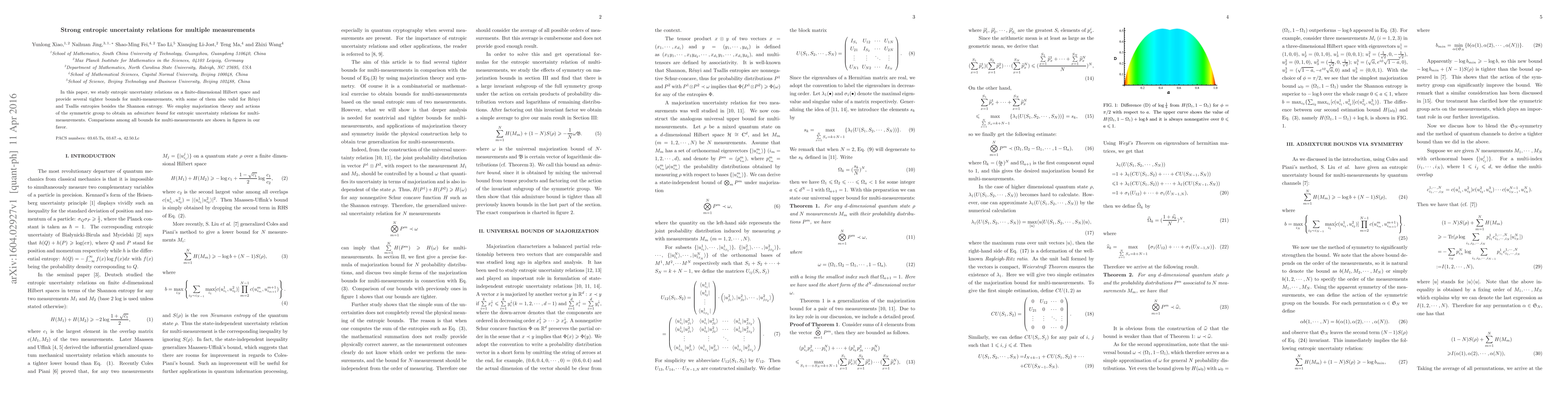 This paper establishes tighter entropic uncertainty relations for multiple measurements in finite-dimensional Hilbert spaces, extending bounds to Rényi and Tsallis entropies. It utilizes majorization theory and symmetric group actions to derive an admixture bound, with comparisons favoring the proposed tighter bounds.