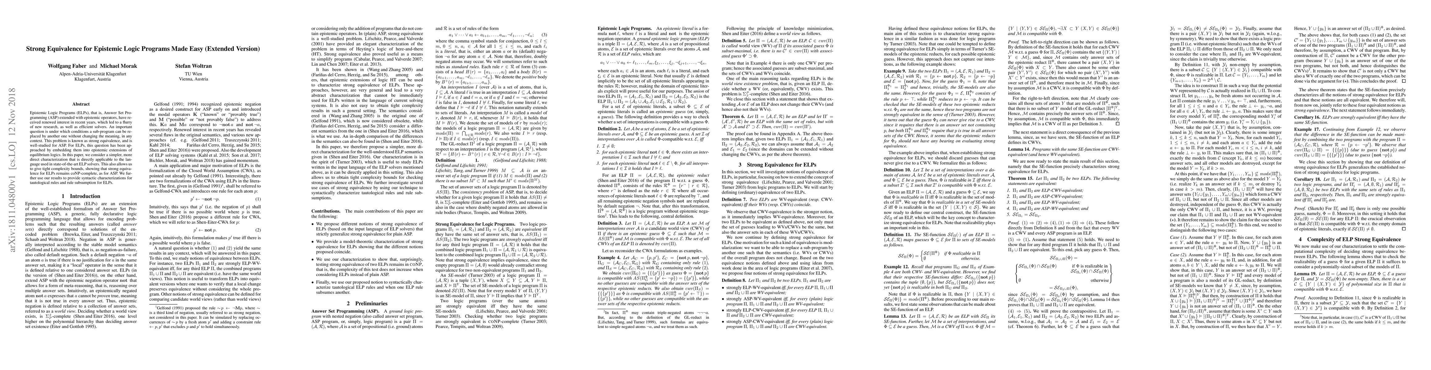 A new study simplifies the analysis of strong equivalence in Epistemic Logic Programs (ELPs), a type of answer set programming, and shows that it remains coNP-complete, with implications for rule subsumption and tautological rules.