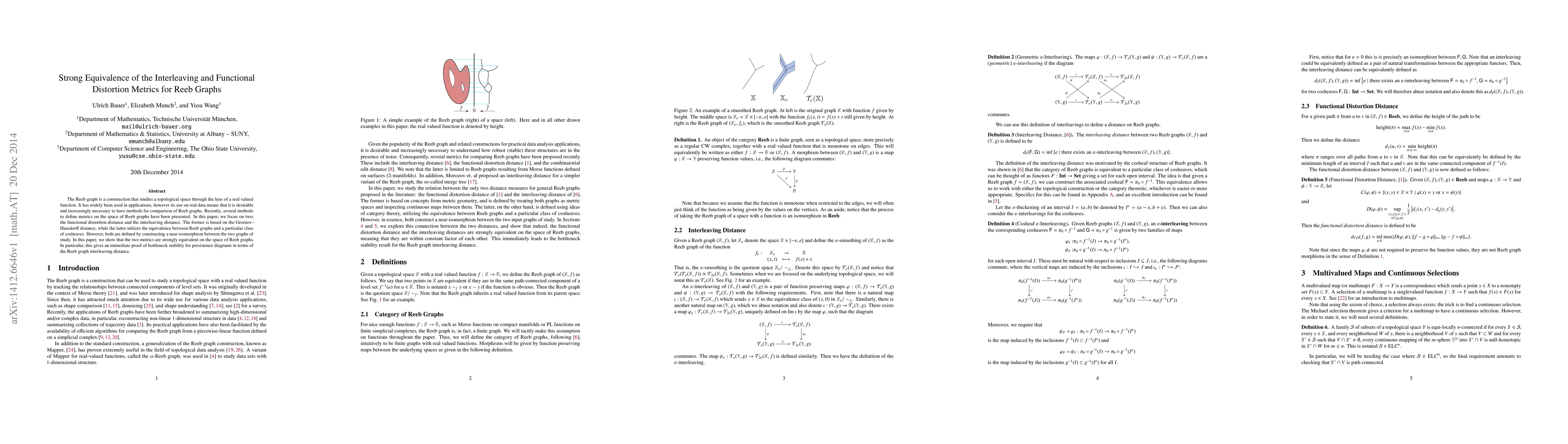 This paper demonstrates the strong equivalence between the functional distortion distance and the interleaving distance for Reeb graphs, providing a proof of bottleneck stability for persistence diagrams. The equivalence is shown through the construction of a near-isomorphism between Reeb graphs, bridging the gap between these two metrics.