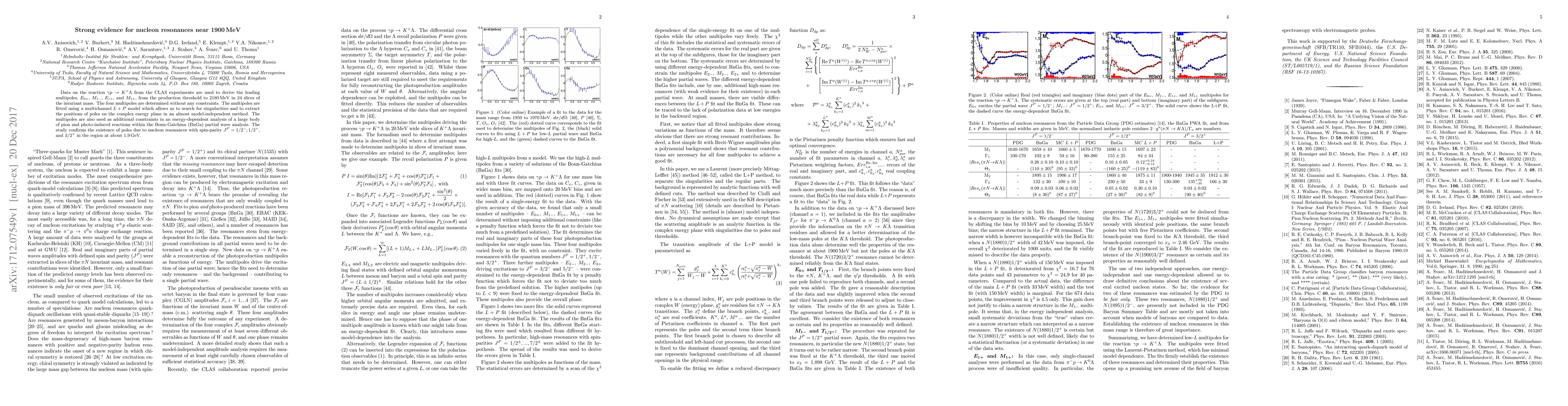 Data on the reaction $\gamma p\to K^+\Lambda$ from the CLAS experiments are used to derive the leading multipoles, $E_{0+}$, $M_{1-}$, $E_{1+}$, and $M_{1+}$, from the production threshold to 2180\,MeV in 24 slices of the invariant mass. The four multipoles are determined without any constraints. The multipoles are fitted using a multichannel $L+P$ model which allows us to search for singularities and to extract the positions of poles on the complex energy plane in an almost model-independent method. The multipoles are also used as additional constraints in an energy-dependent analysis of a large body of pion and photo-induced reactions within the Bonn-Gatchina (BnGa) partial wave analysis. The study confirms the existence of poles due to nucleon resonances with spin-parity $J^P = 1/2^-; 1/2^+$, and $3/2^+$ in the region at about 1.9\,GeV.
