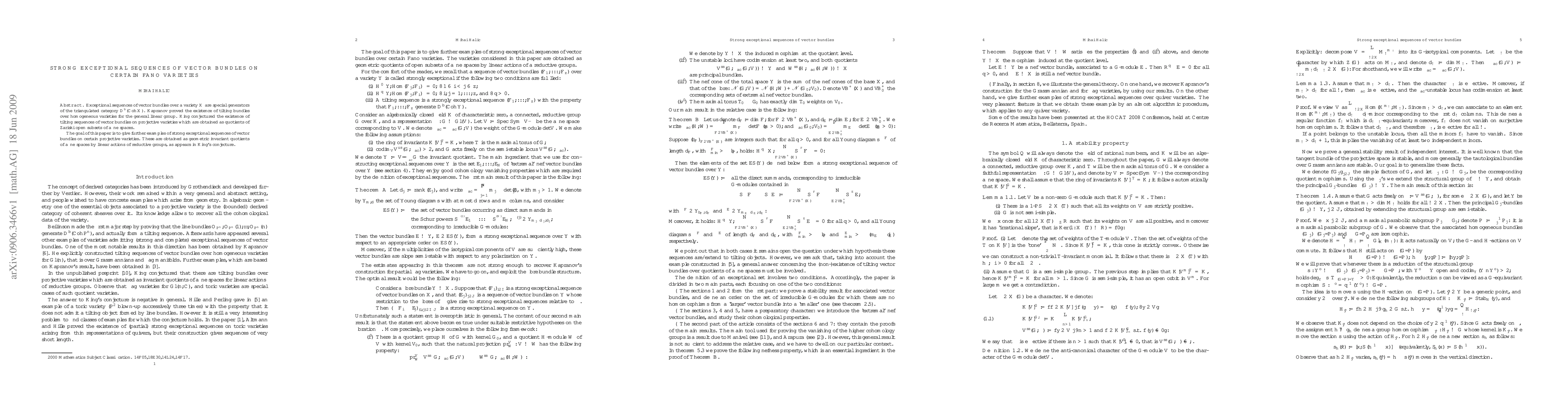 This paper provides examples of strong exceptional sequences of vector bundles on certain Fano varieties derived from geometric invariant quotients of affine spaces under linear actions of reductive groups, supporting A. King's conjecture on tilting bundles.