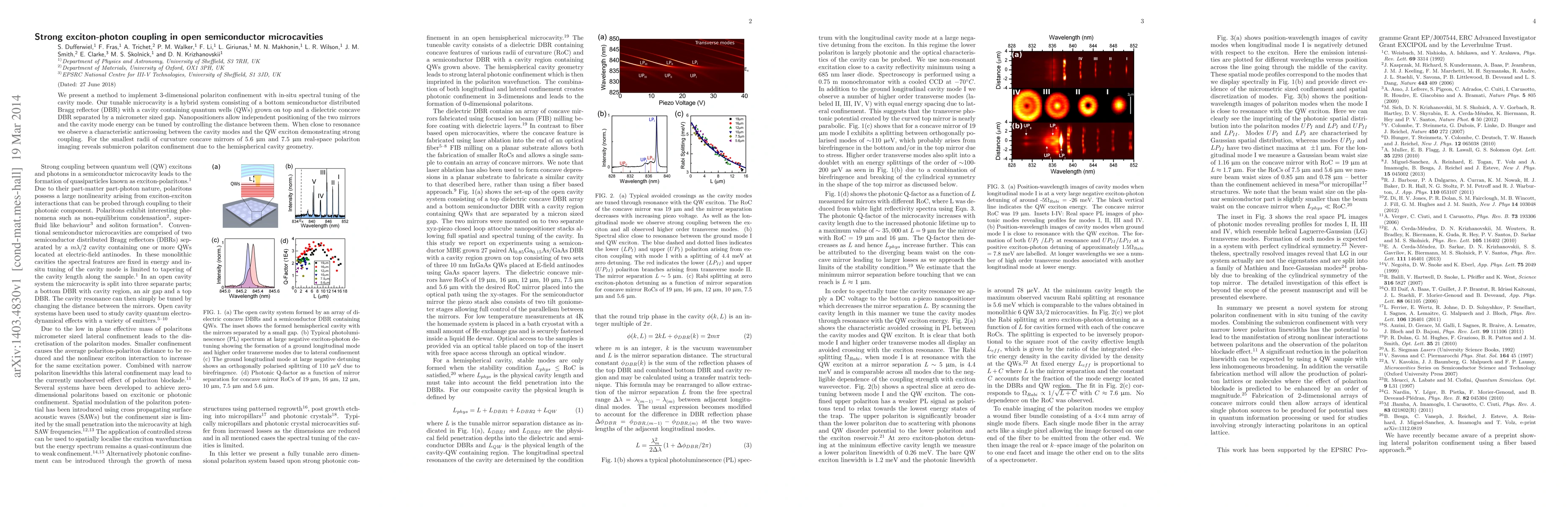 The research presents a method to implement 3D polariton confinement with in-situ spectral tuning of the cavity mode using a tunable microcavity. This hybrid system consists of a bottom semiconductor distributed Bragg reflector (DBR) with a cavity containing quantum wells (QWs) and a dielectric concave DBR separated by a micrometer-sized gap. Nanopositioners allow independent positioning of the mirrors, enabling control of the cavity mode energy by adjusting the distance between them.