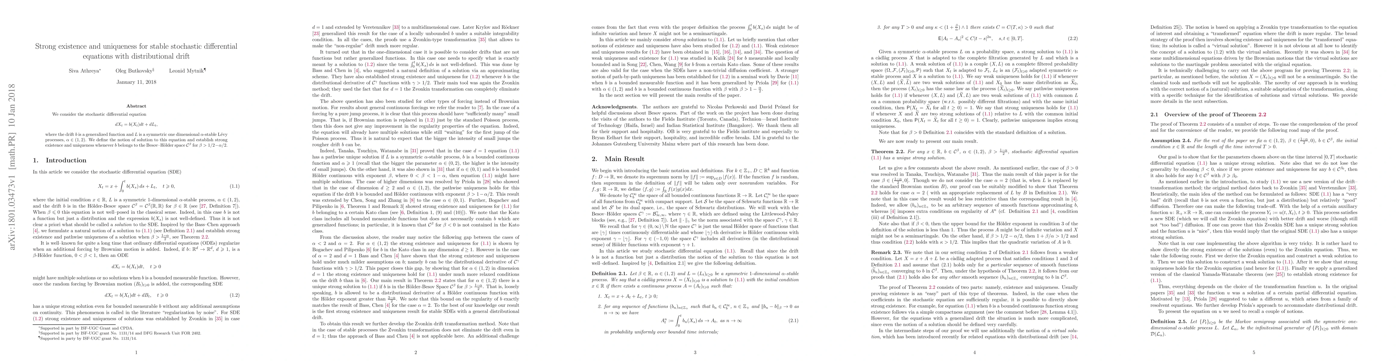 This paper establishes strong existence and uniqueness for stochastic differential equations driven by stable Lévy processes and distributional drifts, proving the results under the condition that the drift belongs to the Besov-Hölder space $\mathcal{C}^\beta$ with $\beta > 1/2-\alpha/2$.