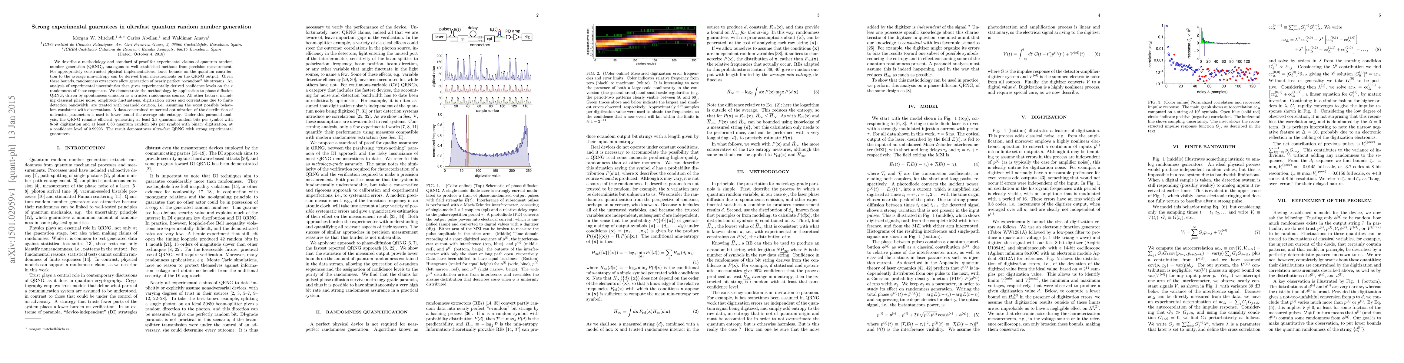The research describes a methodology for providing experimental guarantees in ultrafast quantum random number generation (QRNG), analogous to methods in precision measurement. It involves deriving lower bounds on the quantum contribution to average min-entropy from measurements on QRNG output, followed by randomness extraction to generate nearly perfect 'ε-random' bit streams. Experimental uncertainties are then analyzed to provide confidence levels on the ε randomness of these sequences.