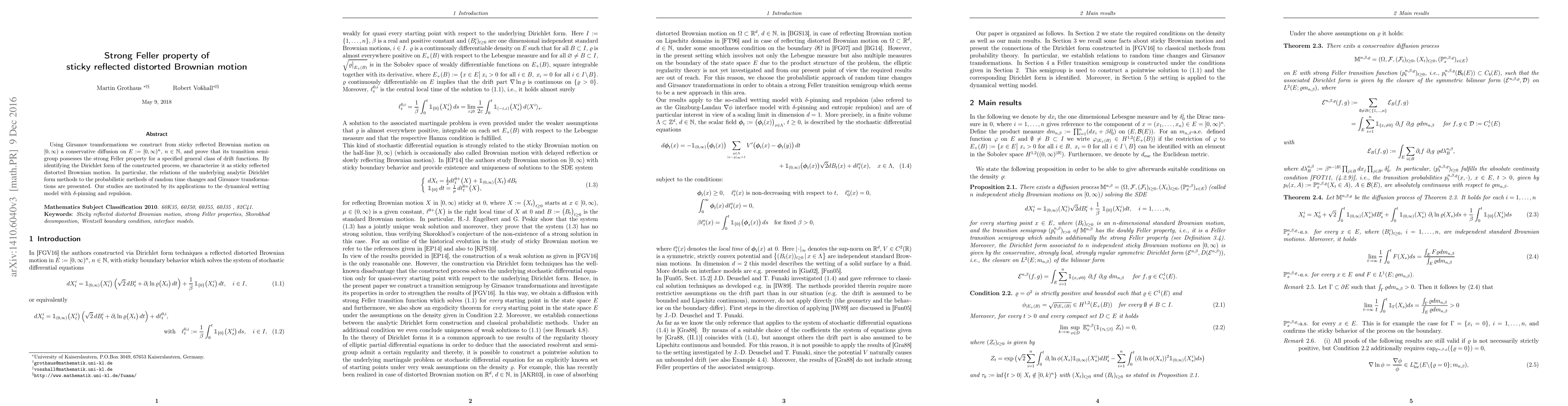 This paper constructs a conservative diffusion from sticky reflected Brownian motion and demonstrates its strong Feller property for a general class of drift functions. The process is identified as sticky reflected distorted Brownian motion, with applications to the dynamical wetting model featuring $\delta$-pinning and repulsion.