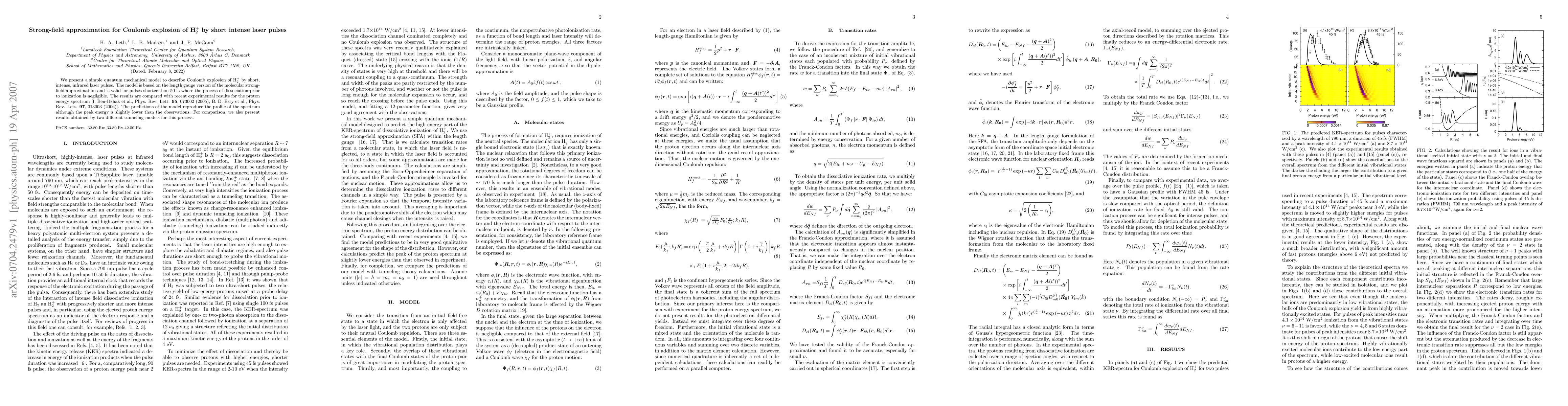 This paper introduces a quantum mechanical model for the Coulomb explosion of H$_2^+$ ions using short, intense laser pulses, based on the length gauge version of the molecular strong-field approximation. The model's predictions match experimental observations for proton energy spectra, though the peak energy is slightly lower than measured.