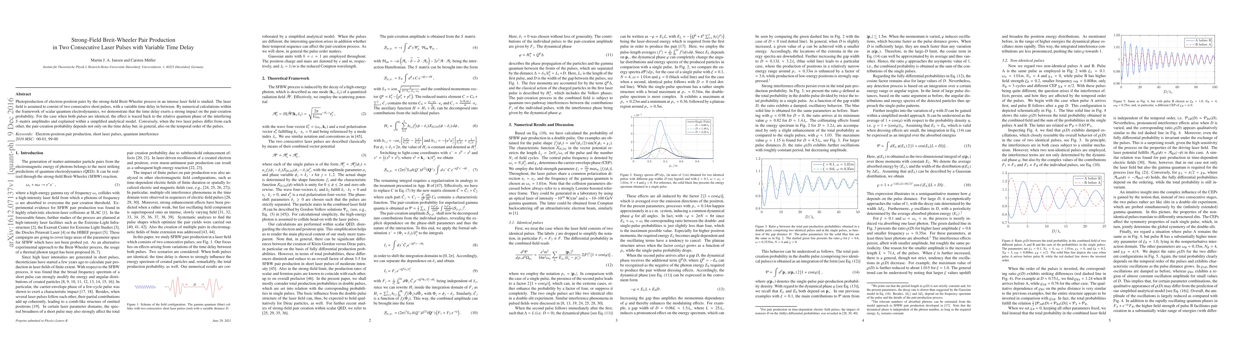 This paper investigates the strong-field Breit-Wheeler process for electron-positron pair production using two consecutive laser pulses with varying time delays. Numerical simulations reveal that the time delay significantly influences pair-creation probability, with the effect explained by the relative quantum phase of interfering S-matrix amplitudes when pulses are identical.