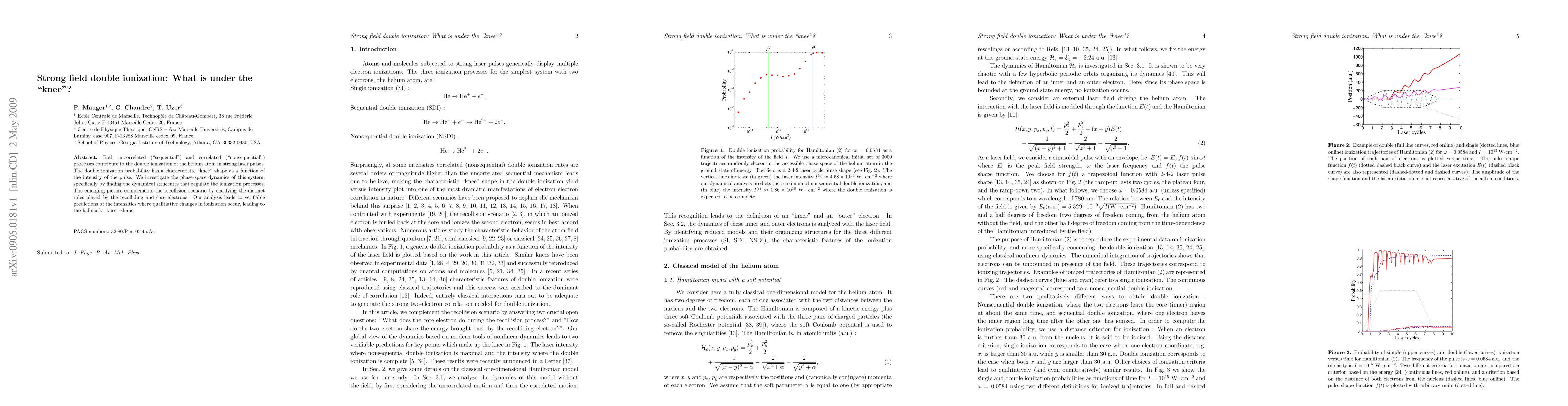 This paper explores the dynamics of double ionization in helium atoms under strong laser pulses, distinguishing between sequential and nonsequential processes. It identifies the phase-space structures that govern these ionization processes, providing insights into the roles of recolliding and core electrons, and offers predictions for the intensity thresholds where qualitative changes in the ionization probability occur, explaining the "knee" shape.