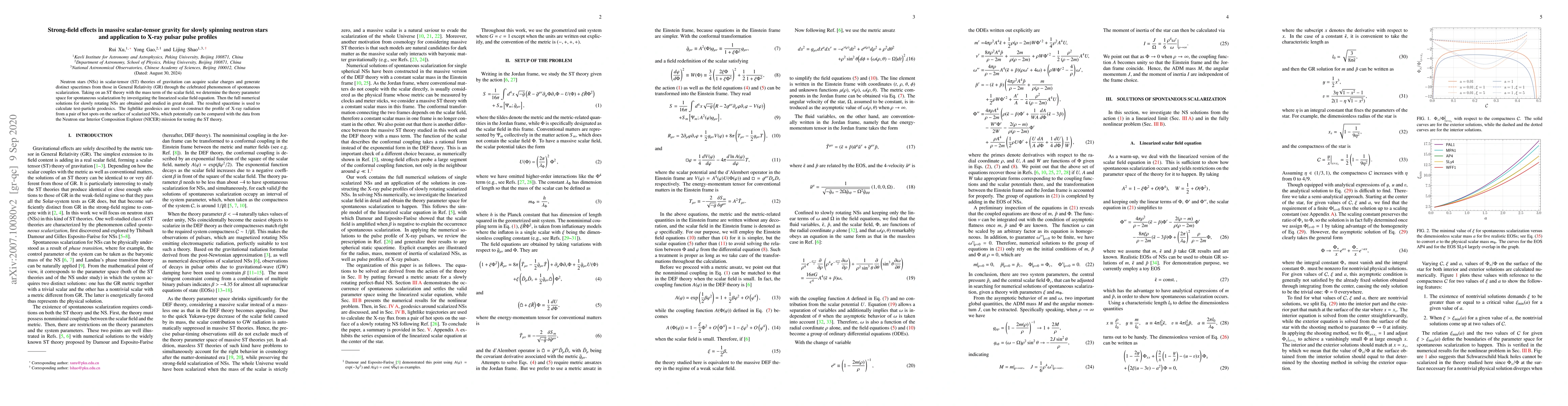 Neutron stars (NSs) in scalar-tensor (ST) theories of gravitation can acquire scalar charges and generate distinct spacetimes from those in General Relativity (GR) through the celebrated phenomenon of spontaneous scalarization. Taking on an ST theory with the mass term of the scalar field, we determine the theory parameter space for spontaneous scalarization by investigating the linearized scalar field equation. Then the full numerical solutions for slowly rotating NSs are obtained and studied in great detail. The resulted spacetime is used to calculate test-particle geodesics. The lightlike geodesics are used to construct the profile of X-ray radiation from a pair of hot spots on the surface of scalarized NSs, which potentially can be compared with the data from the Neutron star Interior Composition Explorer (NICER) mission for testing the ST theory.