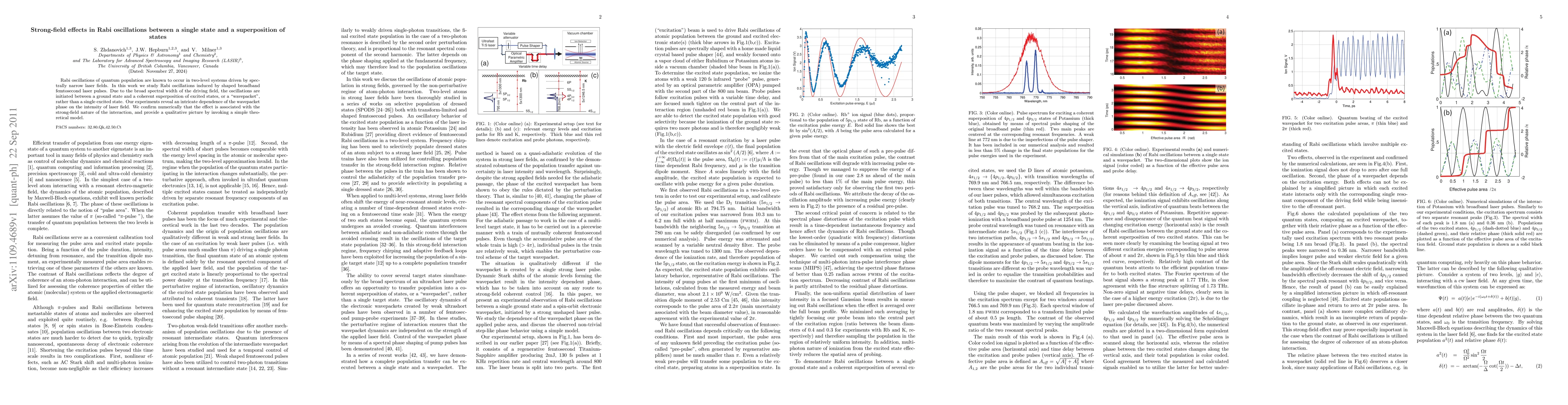 This paper investigates Rabi oscillations induced by broadband femtosecond laser pulses, revealing oscillations between a ground state and a coherent superposition of excited states. The study uncovers a complex dependence of the wavepacket phase on laser intensity, attributed to the strong-field nature of the interaction, supported by numerical simulations and a simple theoretical model.
