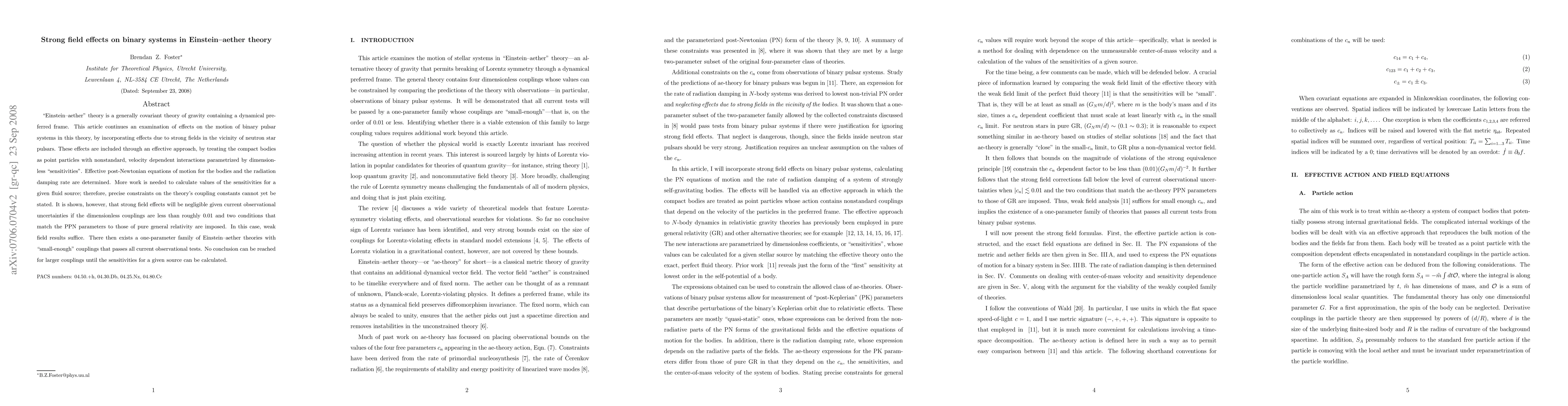 "Einstein-aether" theory is a generally covariant theory of gravity containing a dynamical preferred frame. This article continues an examination of effects on the motion of binary pulsar systems in this theory, by incorporating effects due to strong fields in the vicinity of neutron star pulsars. These effects are included through an effective approach, by treating the compact bodies as point particles with nonstandard, velocity dependent interactions parametrized by dimensionless "sensitivities". Effective post-Newtonian equations of motion for the bodies and the radiation damping rate are determined. More work is needed to calculate values of the sensitivities for a given fluid source, so precise constraints on the theory's coupling constants cannot yet be stated. It is shown, however, that strong field effects will be negligible given current observational uncertainties if the dimensionless couplings are less than roughly 0.01 and two conditions that match the PPN parameters to those of pure general relativity are imposed. In this case, weak field results suffice and imply one further condition on the couplings. Thus, there exists a one-parameter family of Einstein-aether theories with "small-enough" couplings that passes all current observational tests. No conclusion can yet be reached for large couplings.
