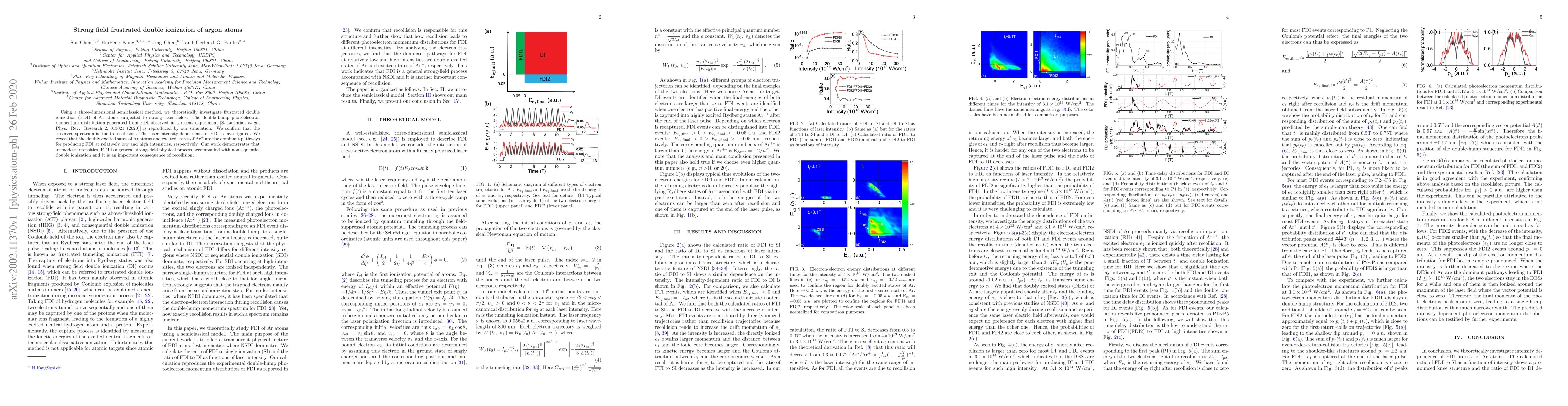 This research explores the strong field frustrated double ionization (FDI) of argon atoms under strong laser fields using a three-dimensional semiclassical method. The study reproduces the observed double-hump photoelectron momentum distribution from recent experiments, confirming the role of recollision in FDI and revealing distinct pathways for FDI at different laser intensities.