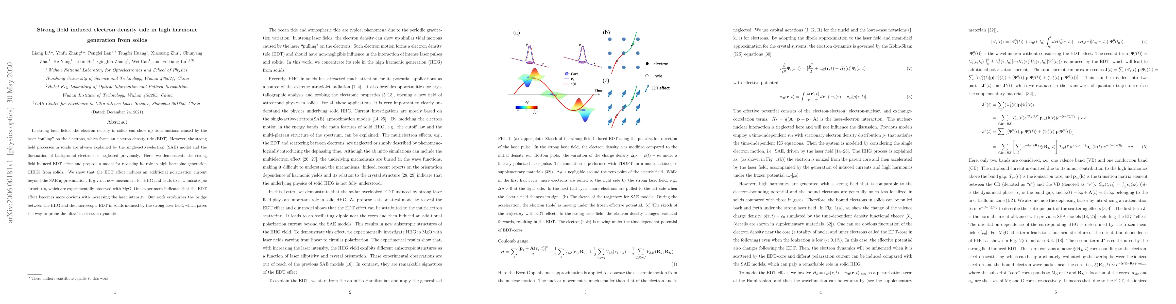 This paper demonstrates that strong laser fields can induce electron density tides (EDT) in solids, which were previously neglected in single-active-electron models. The authors propose a new model showing the EDT effect creates an additional polarization current, leading to new anisotropic structures observed in MgO and suggesting a new mechanism for high harmonic generation (HHG) from solids.