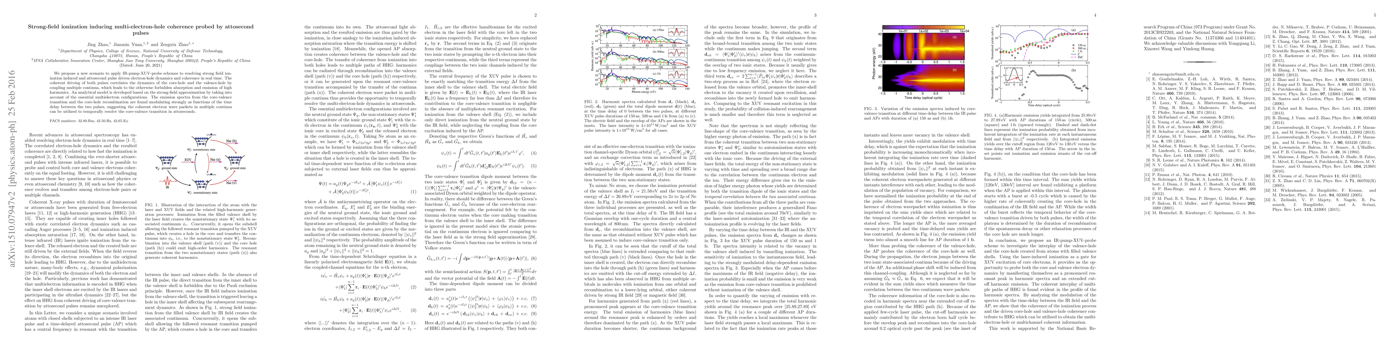 This paper explores the use of IR-pump-XUV-probe techniques to study real-time dynamics and coherence in strong-field ionization, revealing the interplay between core-hole and valence-hole dynamics driven by synchronized infrared and attosecond pulses. The developed analytical model highlights the modulation of emission spectra as a function of pulse delay, offering insights into multi-electron-hole coherence.