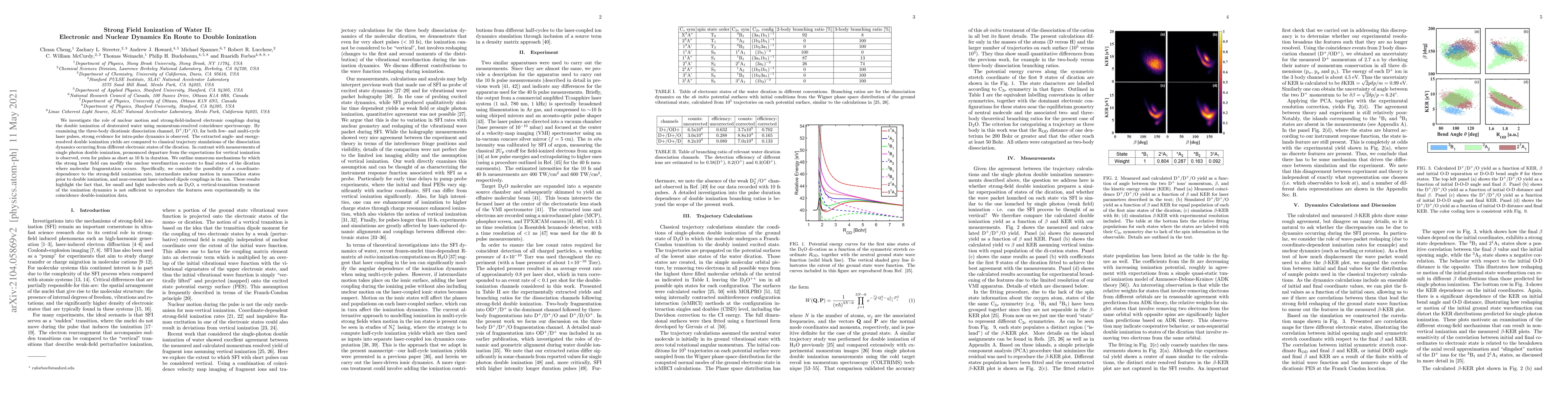 This paper investigates the dynamics of double ionization in deuterated water under strong laser fields, revealing significant nuclear motion and electronic coupling effects. The study finds that traditional vertical-transition models fail to explain the observed ionization dynamics, emphasizing the need for considering nuclear motion and laser-induced interactions.