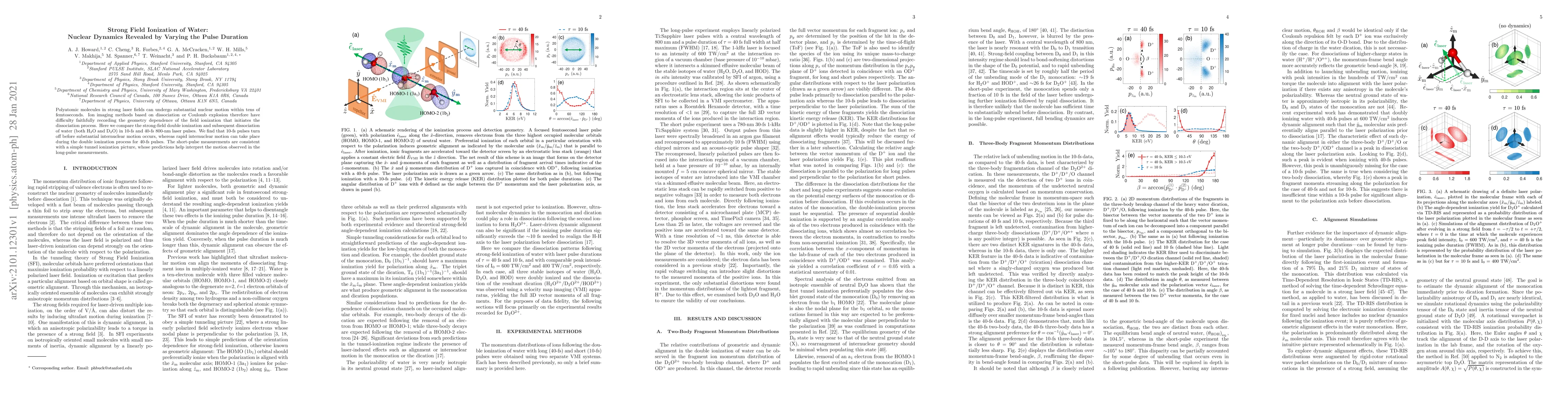 This paper investigates the strong-field ionization dynamics of water molecules under different laser pulse durations, revealing that 10-fs pulses terminate before significant nuclear motion, while 40-fs pulses allow for noticeable internuclear motion during double ionization, aligning with predictions from a tunnel ionization model.