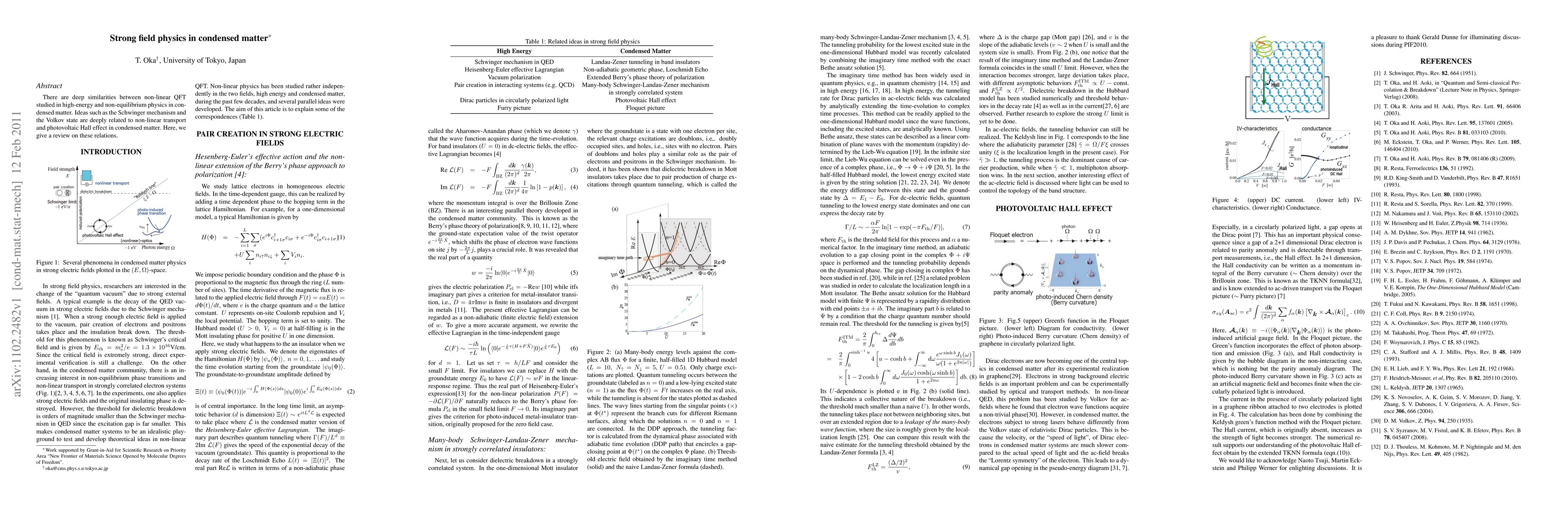 The paper establishes correspondences between high-energy and condensed matter non-linear physics, introducing a condensed matter version of the Heisenberg-Euler effective Lagrangian, and linking it to the Berry phase theory of polarization.
