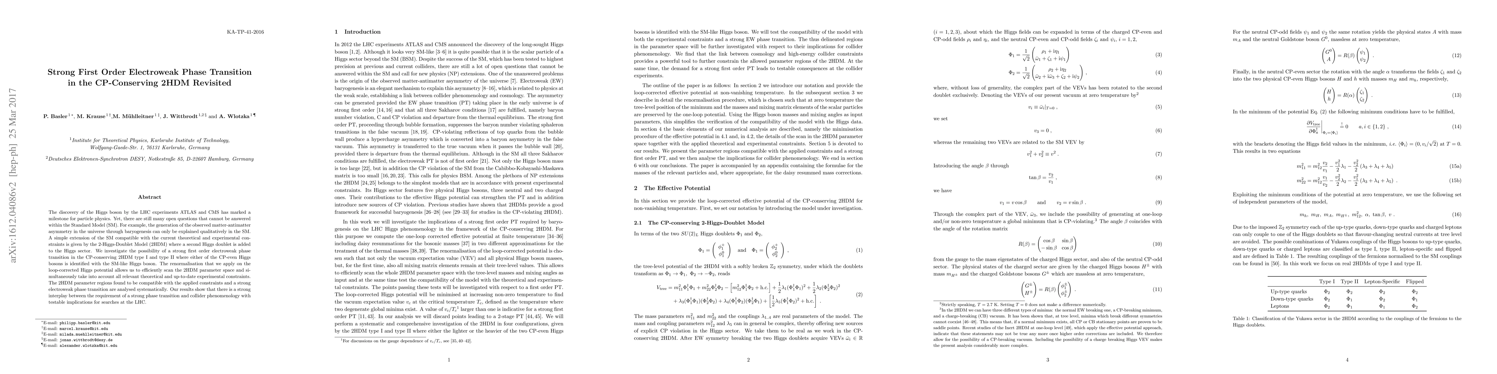 The study investigates the possibility of a strong first order electroweak phase transition in the CP-conserving 2HDM type I and type II, using a renormalization scheme that efficiently scans the 2HDM parameter space while considering theoretical and experimental constraints.