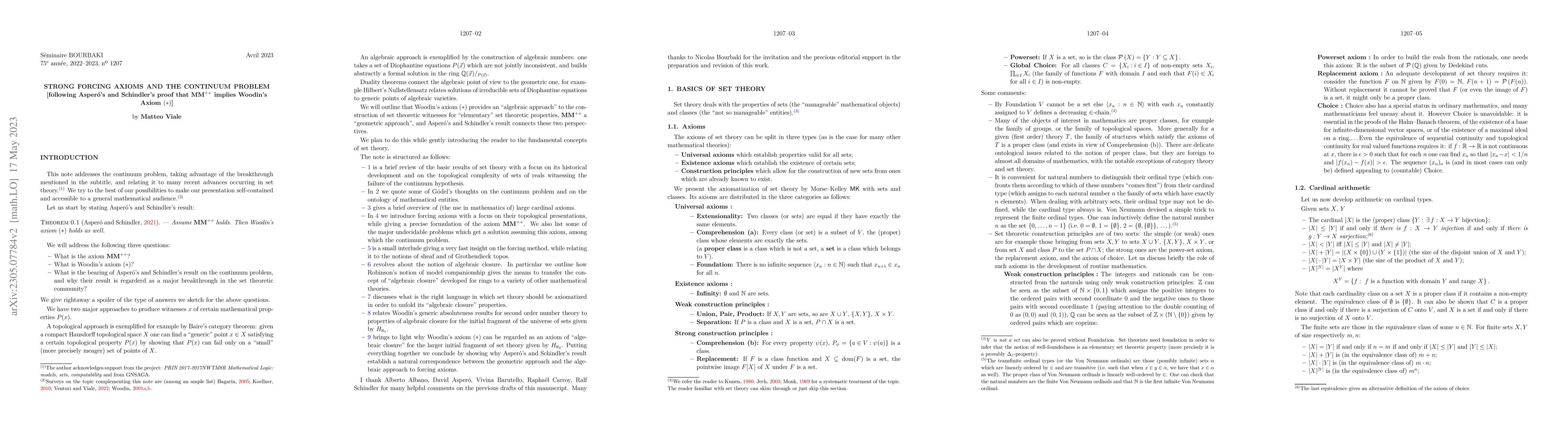 Summary: This paper explores the continuum problem by leveraging the proof that $\mathbf{MM}^{++}$ implies Woodin's Axiom (*), connecting recent advances in set theory to strong forcing axioms. It highlights the implications of these findings for the broader field.