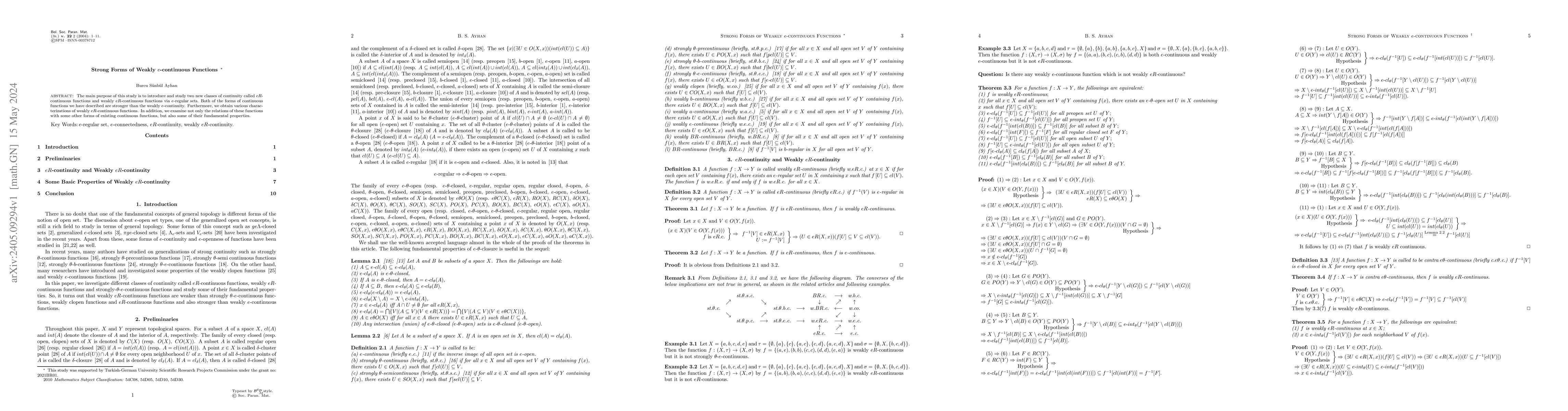 This study introduces two new classes of continuity, eR-continuous and weakly eR-continuous functions, defined via e-regular sets, which are stronger than weakly e-continuous functions. The paper also explores their properties and relationships with other forms of continuous functions.