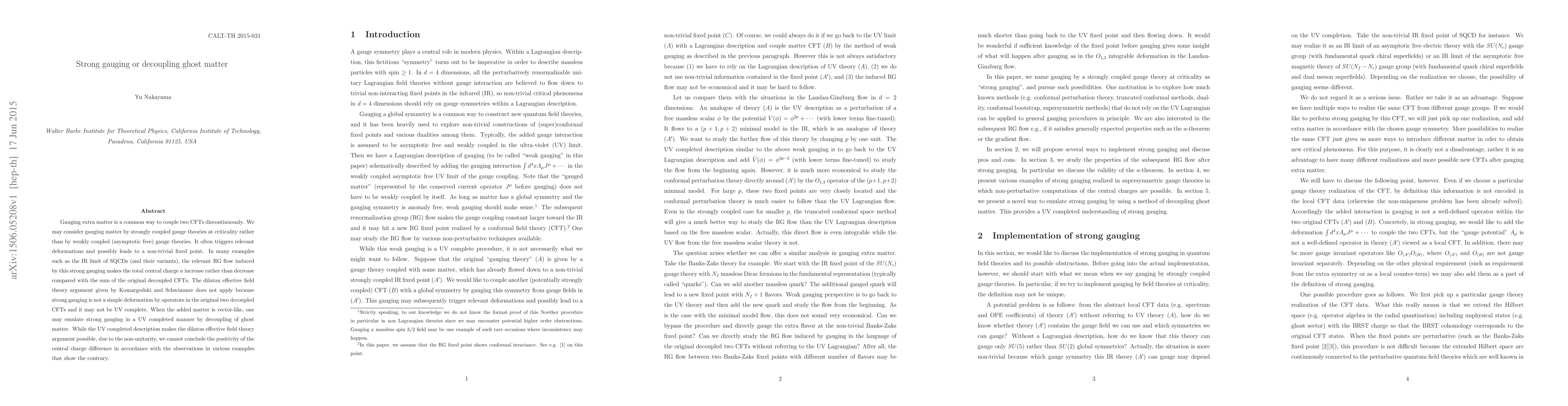 This paper explores the effects of gauging extra matter via strongly coupled gauge theories rather than weakly coupled ones, demonstrating that it often results in an increase in the total central charge $a$. It contrasts this with decoupling ghost matter to emulate strong gauging in a UV complete manner, noting the non-unitarity prevents conclusions about the positivity of the central charge difference.