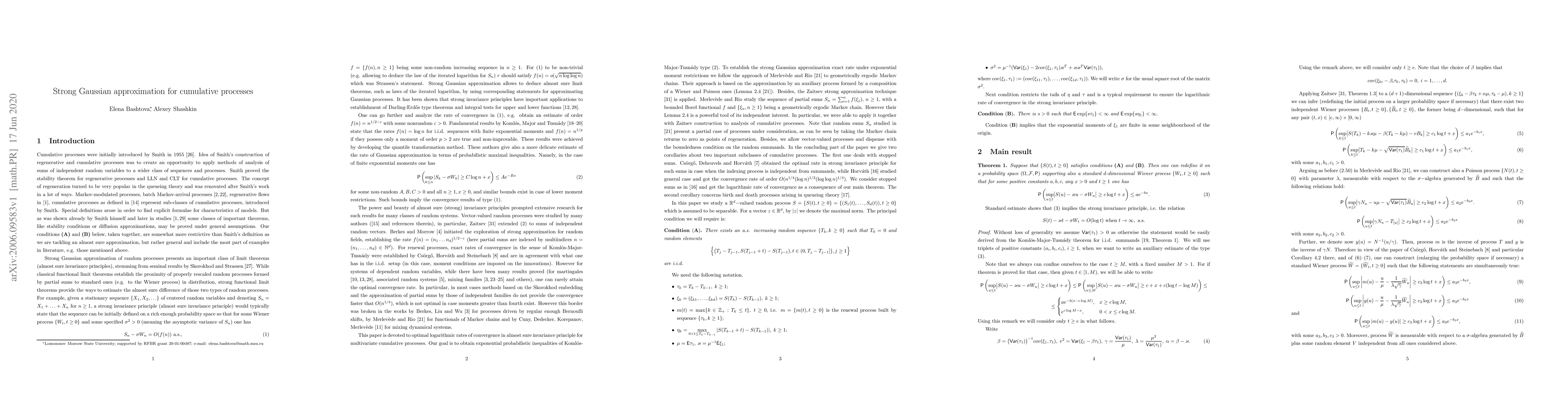 We establish optimal logarithmic rates of convergence in the strong invariance principle for multivariate cumulative processes in the Smith's sense. Exponential probabilistic inequalities of Koml\'{o}s-Major-Tusn\'{a}dy type are obtained. Provided examples include applications to stopped sums and birth and death processes.