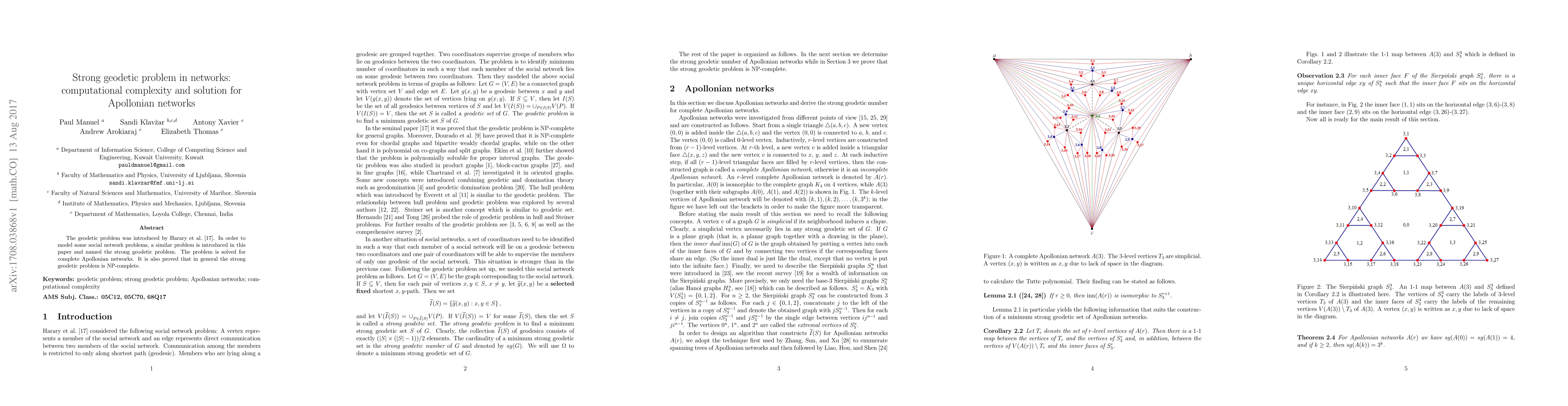 Researchers solved the strong geodetic problem for complete Apollonian networks and proved it is NP-complete in general cases, with implications for modeling social network problems.