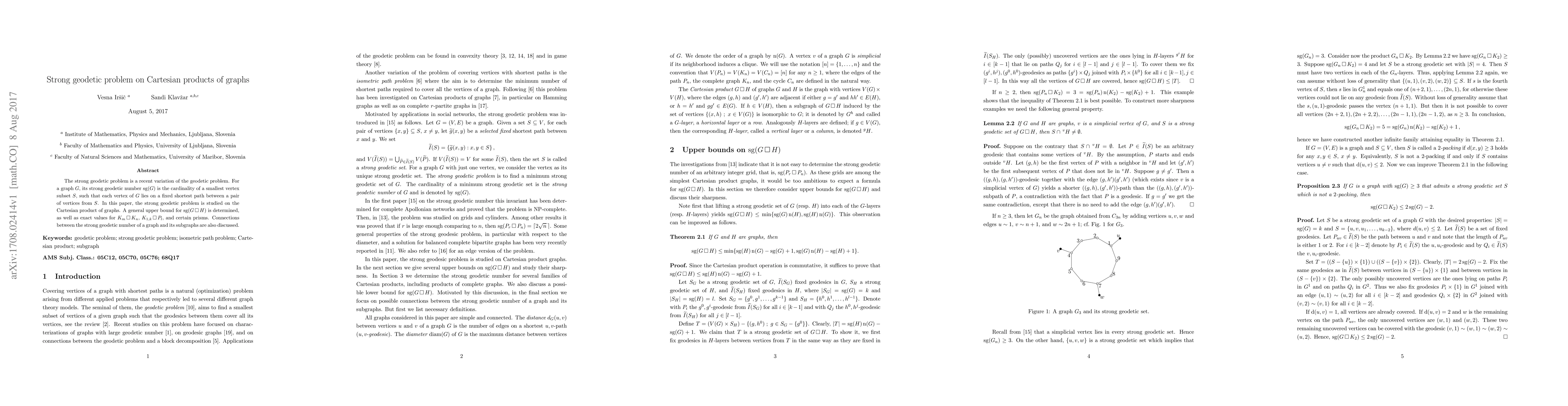 This paper investigates the strong geodetic number ${\rm sg}(G)$ for Cartesian products of graphs, determining an upper bound for ${\rm sg}(G \,\square\, H)$ and providing exact values for specific products like $K_m \,\square\, K_n$ and $K_{1, k} \,\square\, P_l$. It also explores relationships between the strong geodetic number and subgraphs.