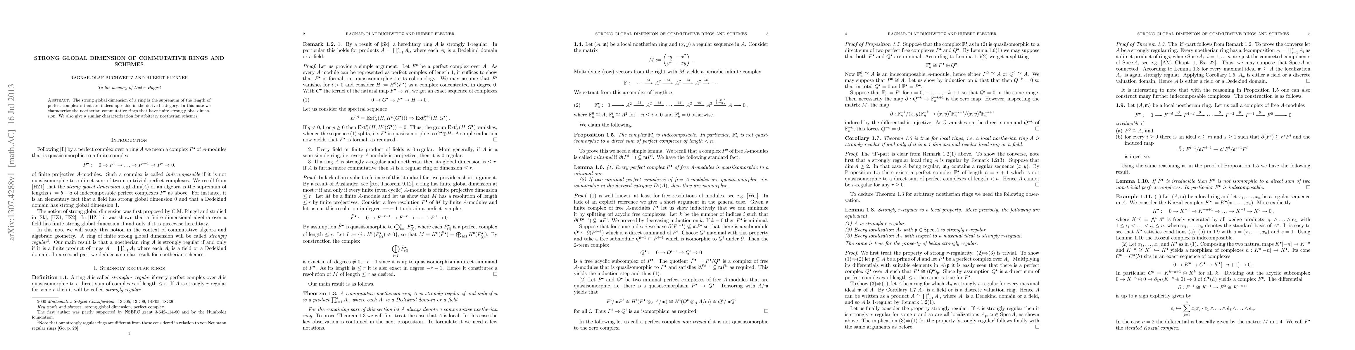 Summary: This paper characterizes noetherian commutative rings and schemes with finite strong global dimension by identifying the supremum of lengths of indecomposable perfect complexes in their derived categories. It provides a detailed examination of the properties that determine this finiteness condition.