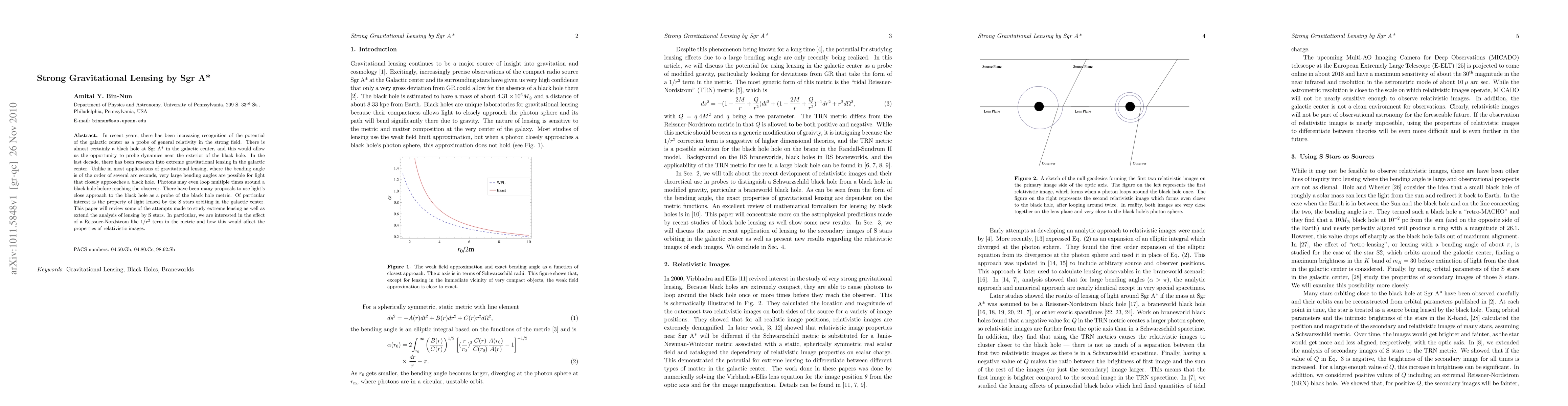 In recent years, there has been increasing recognition of the potential of the galactic center as a probe of general relativity in the strong field. There is almost certainly a black hole at Sgr A* in the galactic center, and this would allow us the opportunity to probe dynamics near the exterior of the black hole. In the last decade, there has been research into extreme gravitational lensing in the galactic center. Unlike in most applications of gravitational lensing, where the bending angle is of the order of several arc seconds, very large bending angles are possible for light that closely approaches a black hole. Photons may even loop multiple times around a black hole before reaching the observer. There have been many proposals to use light's close approach to the black hole as a probe of the black hole metric. Of particular interest is the property of light lensed by the S stars orbiting in the galactic center. This paper will review some of the attempts made to study extreme lensing as well as extend the analysis of lensing by S stars. In particular, we are interested in the effect of a Reissner-Nordstrom like 1/r^2 term in the metric and how this would affect the properties of relativistic images.