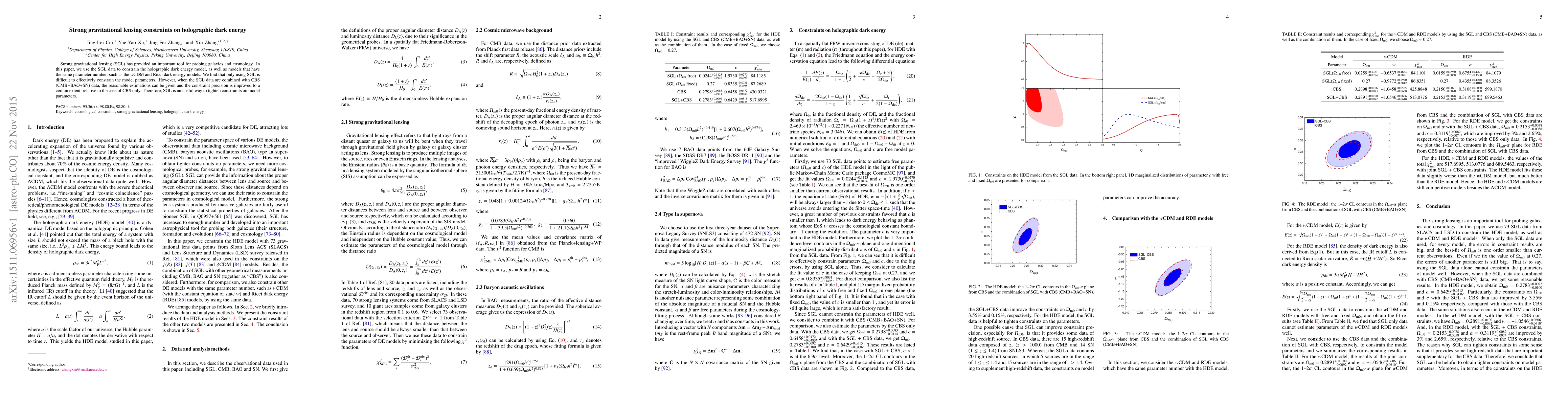 This research uses strong gravitational lensing data to constrain the holographic dark energy model, finding that while SGL alone is insufficient, its combination with CMB+BAO+SN data enhances parameter constraints, thus demonstrating SGL's utility in cosmological model refinement.