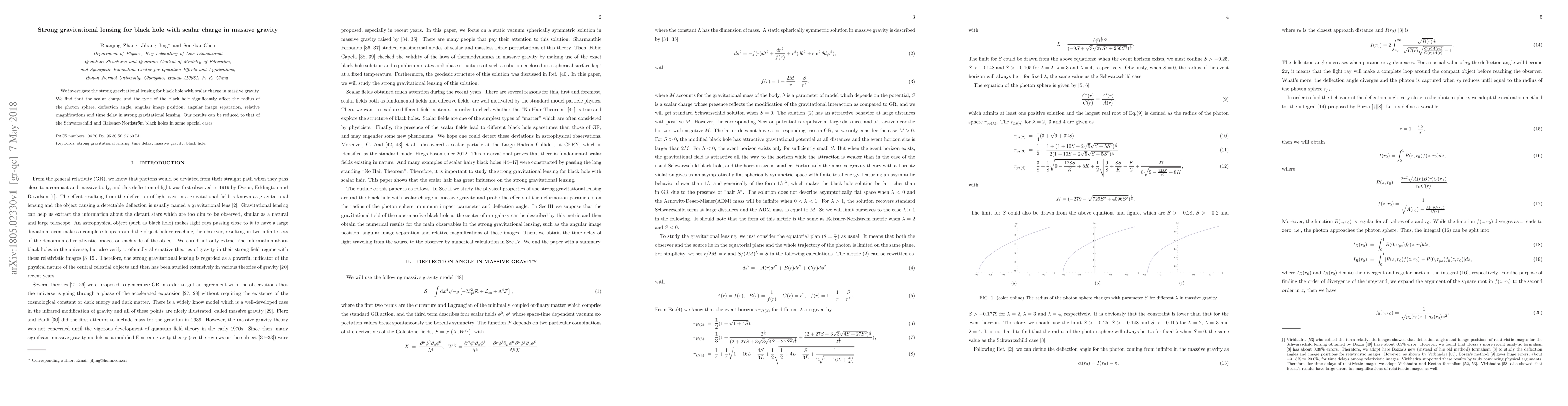 This paper explores strong gravitational lensing around a black hole with scalar charge in the context of massive gravity, revealing significant impacts of the scalar charge on lensing parameters such as the photon sphere radius, deflection angle, and image separation. The findings revert to known results for Schwarzschild and Reissner-Nordström black holes under specific conditions.