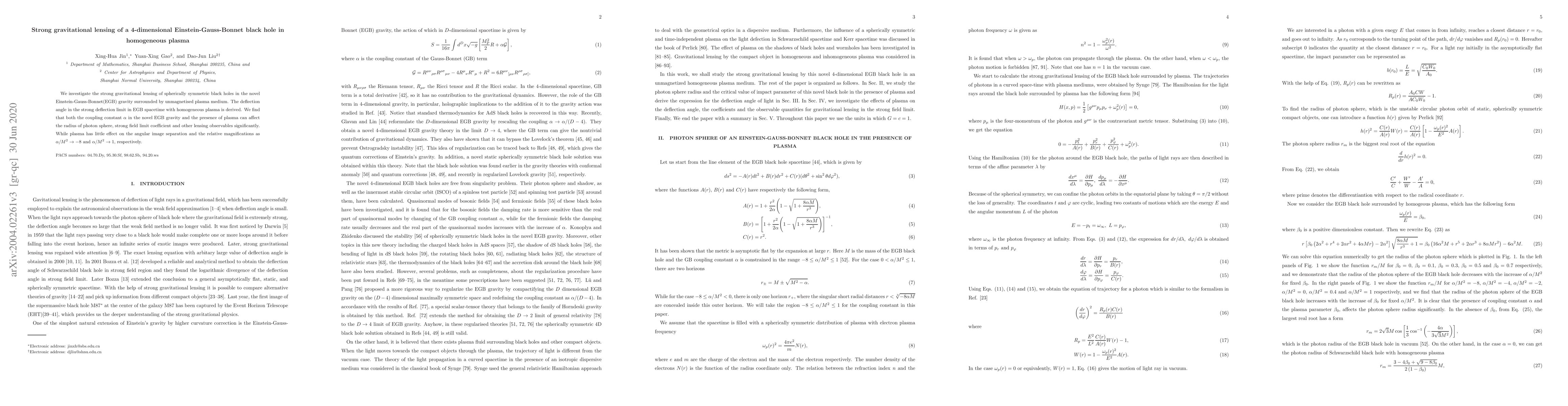 We investigate the strong gravitational lensing of spherically symmetric black holes in the novel Einstein-Gauss-Bonnet(EGB) gravity surrounded by unmagnetised plasma medium. The deflection angle in the strong deflection limit in EGB spacetime with homogeneous plasma is derived. We find that both the coupling constant $\alpha$ in the novel EGB gravity and the presence of plasma can affect the radius of photon sphere, strong field limit coefficient and other lensing observables significantly. While plasma has little effect on the angular image separation and the relative magnifications as $\alpha/M^2\to -8$ and $\alpha/M^2\to 1$, respectively.
