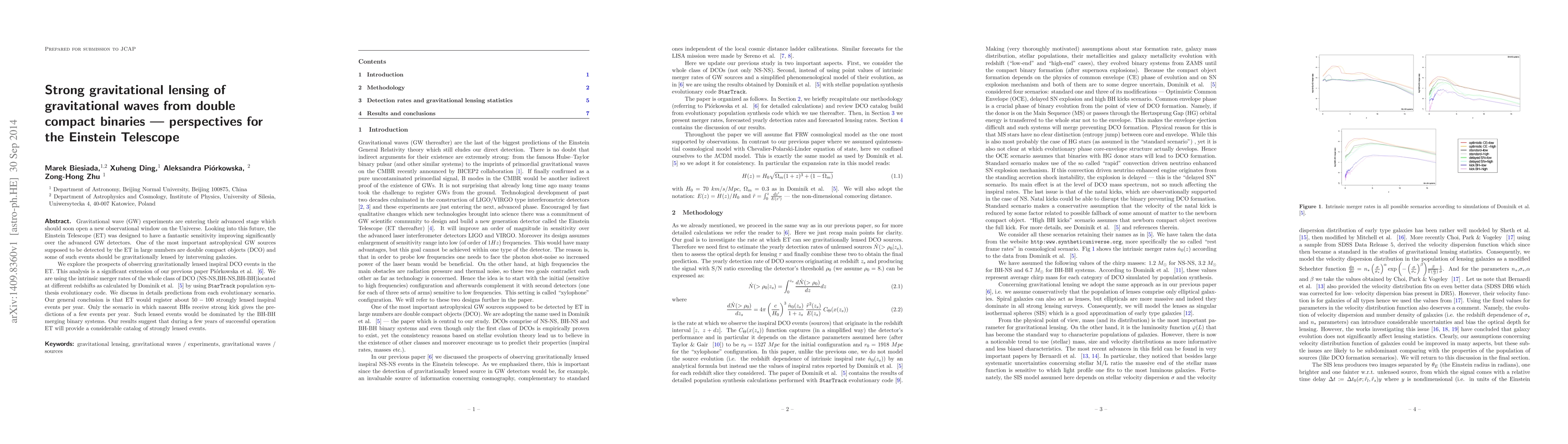 Gravitational wave (GW) experiments are entering their advanced stage which should soon open a new observational window on the Universe. Looking into this future, the Einstein Telescope (ET) was designed to have a fantastic sensitivity improving significantly over the advanced GW detectors. One of the most important astrophysical GW sources supposed to be detected by the ET in large numbers are double compact objects (DCO) and some of such events should be gravitationally lensed by intervening galaxies. We explore the prospects of observing gravitationally lensed inspiral DCO events in the ET. This analysis is a significant extension of our previous paper. We are using the intrinsic merger rates of the whole class of DCO (NS-NS,BH-NS,BH-BH)located at different redshifts as calculated by Dominik et al. by using {\tt StarTrack} population synthesis evolutionary code. We discuss in details predictions from each evolutionary scenario. Our general conclusion is that ET would register about $50-100$ strongly lensed inspiral events per year. Only the scenario in which nascent BHs receive strong kick gives the predictions of a few events per year. Such lensed events would be dominated by the BH-BH merging binary systems. Our results suggest that during a few years of successful operation ET will provide a considerable catalog of strongly lensed events.